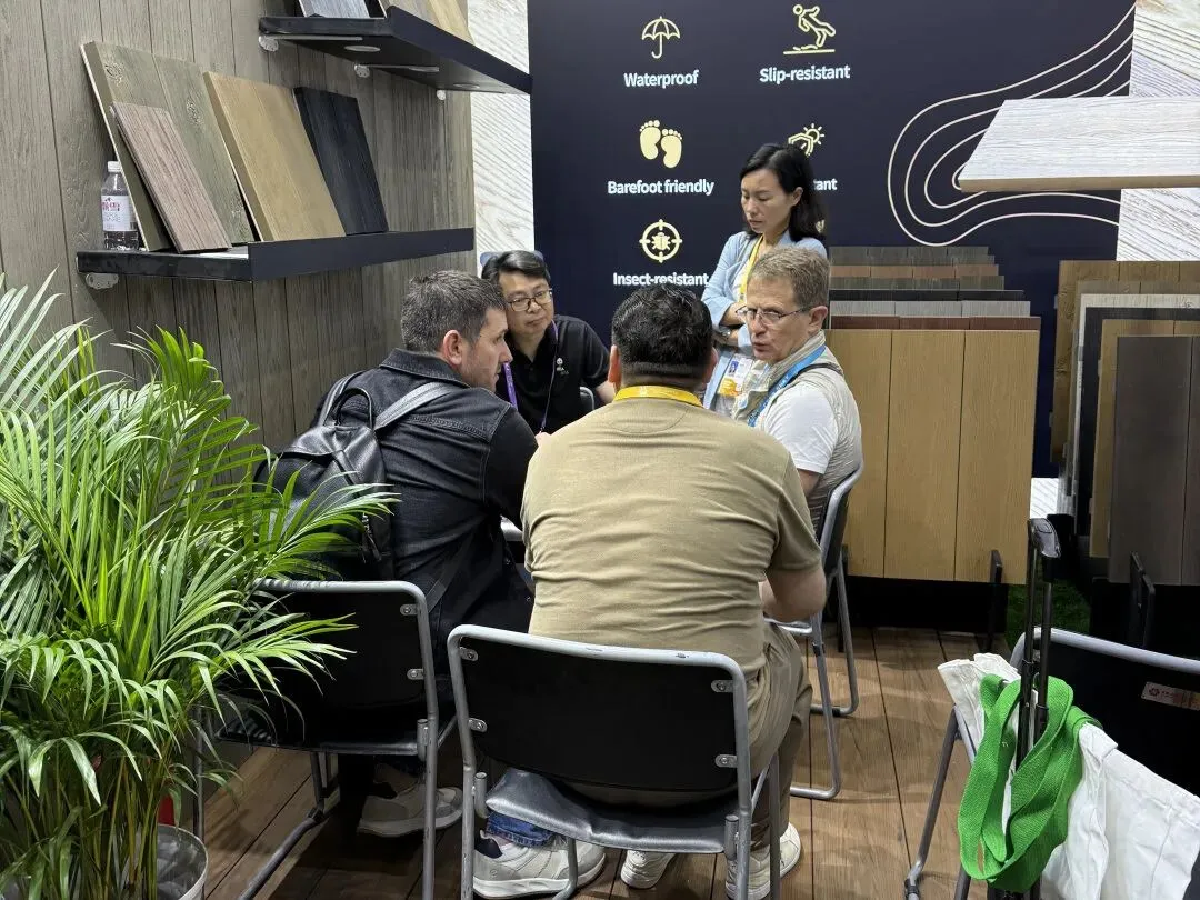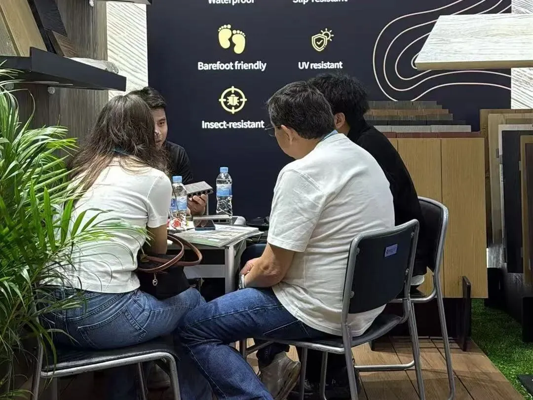 现场团队的耐心讲解、细致对接,从产品优势到应用场景的全维度答疑,也让海内外客户感受到了正源塑木的专业与诚意。