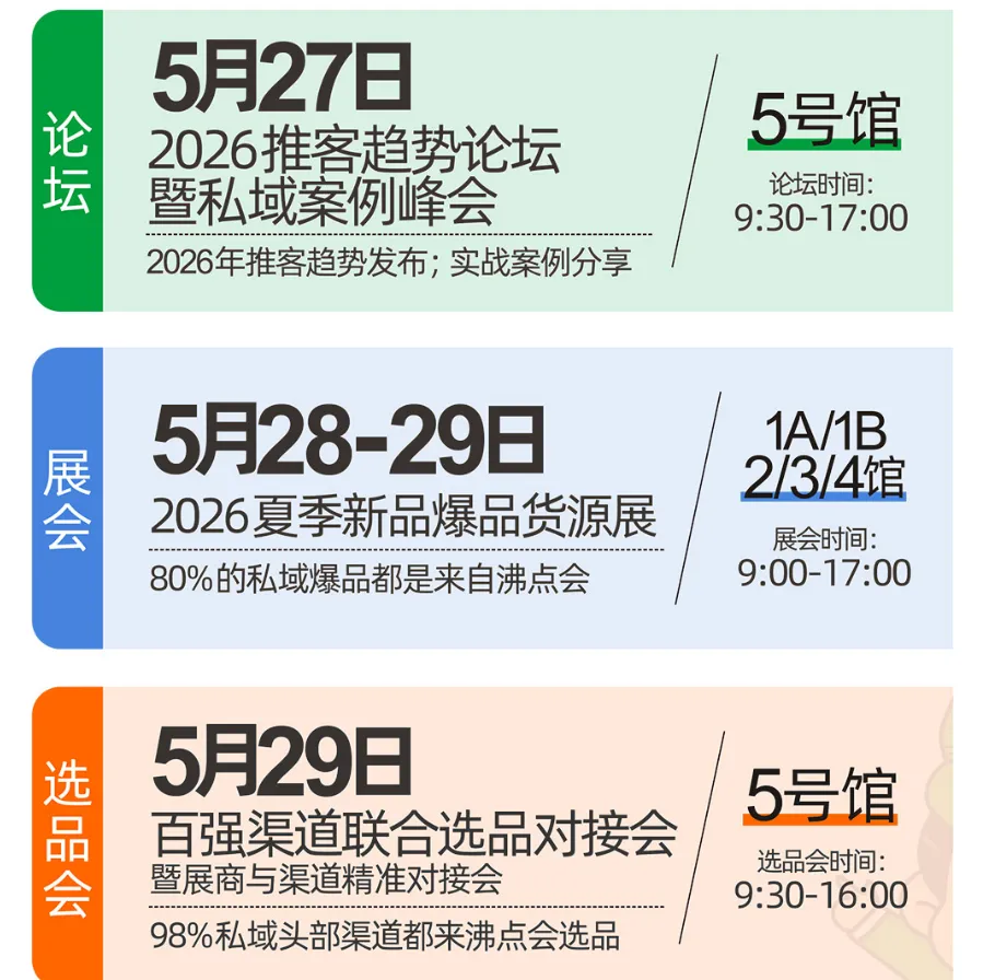 本次展会活动为期 3 天(5 月 27 日 - 29 日),每日主题清晰、环节紧凑,全方位满足学习、选品、对接需求,具体日程如下: