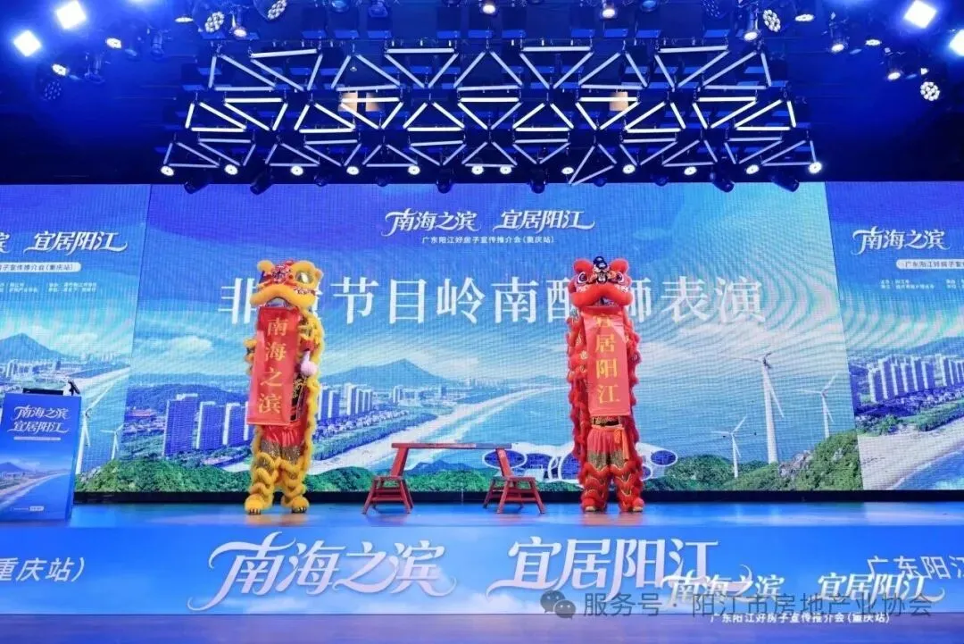 作为广府文化的重要传承地,阳江既有岭南水乡的温润,也兼具滨海城市的开阔与豁达。一场激昂的岭南醒狮表演拉开推介会帷幕;步入内场,椰树、沙滩椅、贝壳……把阳江的海“搬”到了现场;非遗风筝编织技艺展示、炒米饼等特色美食品鉴,文化搭台,阳江好房子唱戏。