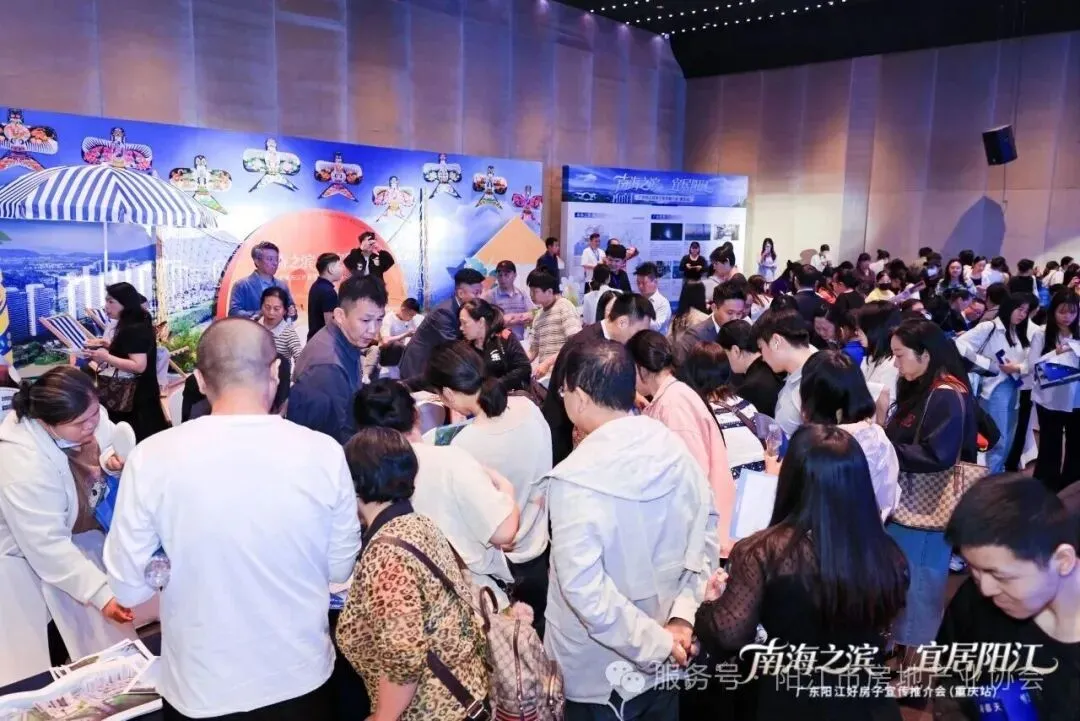 活动现场高朋满座、气氛热烈,吸引超300多名嘉宾及意向客户到场,28个优质地产项目跨越千里集中亮相,奏响了阳江与重庆跨区域置业合作的新乐章。