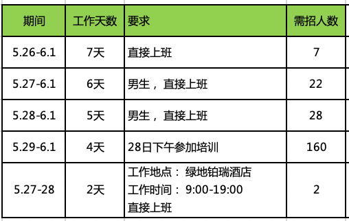 -18周岁,28岁以下,形象较好,男女不限;-较强沟通能力;有相关展会工作经验者优先;-需参加下午28号下午13:30培训;-安排的工作需连续做完,不连续做完不发薪