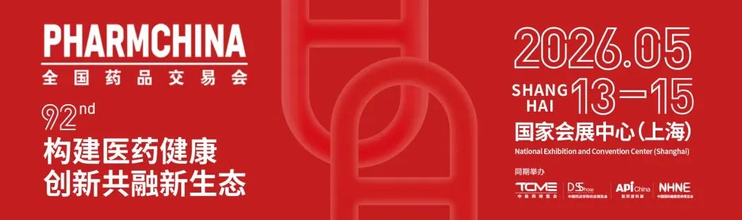 第92届全国药品交易会(PHARMCHINA),5月13日-15日即将在上海国家会展中心盛大开启!同期举办2026中国国际健康营养博览会(NHNE)、第94届中国国际医药原料药/中间体/包装/设备交易会(API China)!