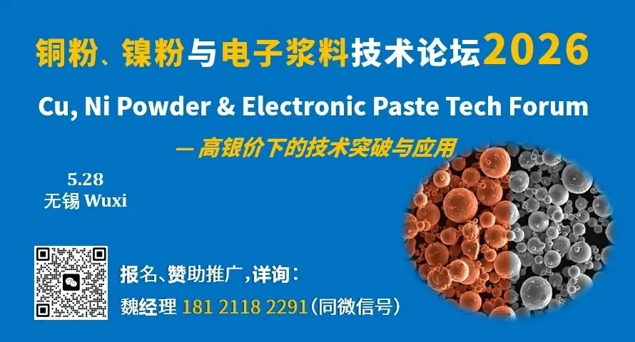 首届“铜粉、镍粉与电子浆料技术论坛”将于2026年5月28日举办,重点围绕电子级铜粉、镍粉及银包铜、银包镍复合粉体的制备技术、表面工程、浆料配方设计与下游应用展开深入交流。论坛将邀请粉体与浆料企业,以及下游MLCC与功率器件厂商、光伏和EMI应用方以及高校、科研院所,共同探讨关键材料国产化、工艺创新与成本优化路径,推动铜、镍体系导电材料在新一轮产业升级中的应用。