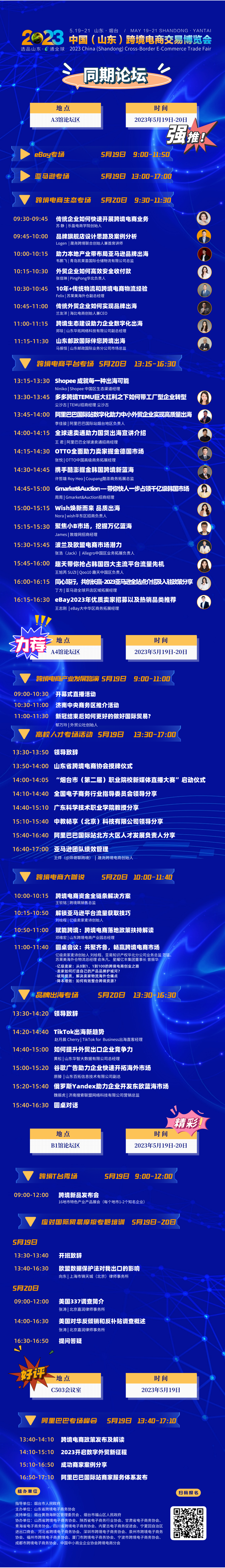 同期有eBay、亚马逊全球开店、阿里巴巴专场论坛,还有众多平台官方到现场分享,更有Temu山东首次分享!