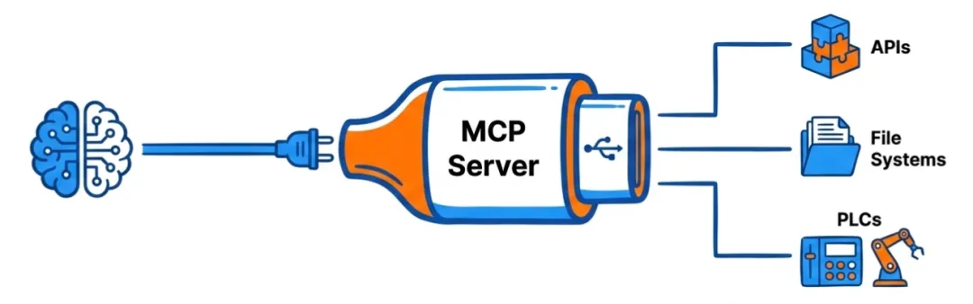 通过 MCP,不管是哪家的 AI Agent 就可以以统一的接口方式深入到底层,连接数据库、API、文件系统,实时读取机器的视觉数据和 PLC 变量。