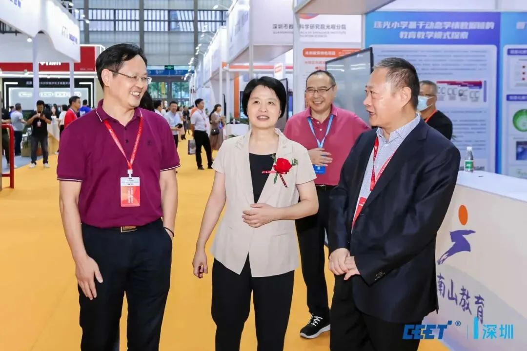 中国教育装备行业协会秘书长李瀛,深圳市福田区委常委、统战部部长吴欢,深圳市教育局原二级巡视员张涞临,教育部关心下一代工作委员会常务副主任、中国教育装备行业协会专家委员会主任王富,深圳市教育学会会长金依俚,教育部教育技术与资源发展中心标准处处长刘强,深圳市教育装备中心主任张惠敏,深圳市教育科学研究院院长李桂娟等领导和嘉宾出席开幕式。温州市教育装备行业协会作为深圳市教育装备行业协会作为战略合作友好协会,协会党支部书记、副会长苏尚州出席开幕式。