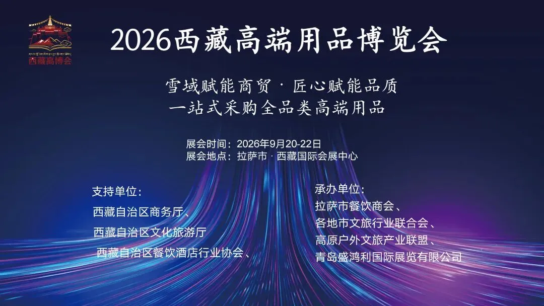 支持单位:西藏自治区商务厅西藏自治区文化旅游厅西藏自治区餐饮酒店行业协会承办单位:拉萨市餐饮商会各地市文旅行业联合会高原户外文旅产业联盟青岛盛鸿利国际展览有限公司政策背景与工作部署深入贯彻西藏自治区政府扩内需、促消费、稳商贸、强文旅专项部署,落实商务厅《2026年全区生活服务业提质升级扶持政策》。产业发展黄金窗口期抢抓西藏旅游大爆发、酒店大新建、餐饮大扩容、户外大发展机遇,2026年游客量预计突破8000万人次,相关产业采购需求激增。展会定位与重要性本年度唯一全域采购集中到场的大型专业订货展会,打造西藏规模最大、品类最全、专业度最高的综合性高端用品博览会,打通高原地区一站式商贸渠道。产业集中,采购需求旺盛西藏本地餐饮、酒店、文旅、户外产业集中爆发,采购集中、下单集中、补货集中,市场需求缺口大。无中间加价,直面终端大客户没有中间层层加价环节,参展商可直接与终端大客户对接,降低交易成本,提高利润空01 酒店行业采购商全区星级酒店总经理、工程采购、后勤总监将到场,带来酒店相关用品的采购需求。02 餐饮行业采购商连锁餐饮总部老板、后厨总厨、食材采购负责人参会,采购餐饮所需食材、设备等。03 文旅及其他行业采购商拉萨、日喀则、林芝、山南全域民宿集群、景区营地负责人,大型商超、连锁便利店、物资供应链批发商,机关单位、国企后勤、物业保洁集中采购部门,高端圈层私享买家、礼品团购大客户等将集中到场。厂家直接参展,砍掉中间环节厂家直接参展,省去中间商,实现与终端客户的直接沟通与交易。现场订货、议价、签约可现场订货、现场议价、现场签约区域独家代理权,快速布局西藏全境渠道。一次逛展,品类配齐客户一次逛展,即可采购到所需的全部品类,无需多处奔波。省时、省力、省钱,效率翻倍大大节省采购时间和精力,降低采购成本,采购效率翻倍,成交率极高。多渠道同步推广全城线下商圈海报、社群渠道、行业协会、餐饮酒店群、户外文旅行业群同步推广,精准引流。曝光量大、客户质量高通过官方流量全域宣传,确保展会曝光量大,吸引的客户质量高,提升参展效果。游客量增长驱动住宿需求2026年西藏游客量预计突破8000万人次,酒店民宿新建数量同比暴涨,住宿设施扩容需求迫切。后厨设备缺口显著新建及升级酒店民宿对商用烹饪设备、蒸烤设备、大功率后厨电器等需求激增,市场供应缺口巨大。客房及清洁设备需求旺盛客房布草、电器、一次性耗材,以及清洁扫地设备、智能垃圾处理设备、冷链设备等配套用品供不应求。餐饮商圈升级带动开店潮拉萨餐饮商圈全面升级,火锅、特色中餐、高原特色餐饮快速开店,门店扩张催生大量采购需求。食材供应持续紧张火锅食材、冷冻食品、牛羊肉供应链等核心食材供不应求,本地市场补货需求集中。用品及机械需求同步增长调味品、包装耗材、食品加工机械、清洗分拣设备、全自动包装机械设备等配套用品采购量显著上升。高端消费市场持续走高城市高端消费需求激增,珠宝名表、轻奢礼品、高端茶咖、绿色食品等团购订单量大幅增长。户外露营成为文旅主力赛道全域户外露营、高原自驾热度攀升,户外帐篷、防寒装备、营地设施常年处于缺货状态。眼镜及健康装备需求扩大太阳镜、运动眼镜、AI智能眼镜等户外眼镜,以及助听器等健康用品需求随文旅发展同步增长。 1.酒店全套设备及用品:客房布草、客房电器、大堂软装装饰、一次性客房耗材、商用烹饪设备、蒸烤设备、大功率后厨电器、中西厨全套工程厨具、洗消一体机、高温消毒设备、清洁扫地设备、清洁机器人、智能垃圾处理设备、油水分离环保设备、全系列冷藏冷冻保鲜制冷设备、冷链设备、酒店专用纸、商务生活用纸、湿巾、一次性环保用品、一次性纸杯、消杀防疫物资。 2.餐饮食材全品类:生鲜食材、牛羊肉供应链、火锅食材、烧烤食材、冷冻食品、米面食品、高端水果、甜品饮料、乳制品、各类粮油干货、复合调味料、火锅调料、底料酱料、香辛料、食品加工机械、清洗分拣设备、杀菌设备、包装材料、全自动包装机械设备。 3.高端厨房电器:气电一体炉、微波炉、电磁炉、烤箱、空气炸锅、刀具、锅具、集成灶、嵌入式厨电、电切刀、洗菜机、绞肉机、刨冰机、酸奶机和冰淇淋机、洗碗机、紫外线消毒器、消毒柜、抽油烟机、冰箱冰柜、电饭煲、电压力锅、破壁机、榨汁机、搅拌机、电热水壶、智能厨房小家电。 4.生活用纸卫生用品类:卫生纸、面巾纸、手帕纸、餐巾纸、厨房用纸、擦手纸、座垫纸、妇幼呵护及老人护理用品、成人纸尿裤/片、成人拉拉裤、轻度失禁用品、护理垫等湿巾、柔巾卷、湿厕纸,纸内裤、压缩毛巾、面膜、卫生巾、卫生护垫、产妇巾、乳垫、妇婴两用巾、卫生棉条、婴儿纸尿裤/片、婴儿拉拉裤、隔尿垫巾、一次性医疗卫生用品等。 5.大健康产品:健康用品、养生功能产品、中药材、中成药、中药制剂、医疗器械、制药机械等。 6.高原防寒户外露营装备、自驾旅行全套文旅配套用品、体育用品、太阳镜、隐形眼镜、3D眼镜 夹鼻眼镜、矫正透镜、(光学)眼镜、运动眼镜、儿童眼镜、老花镜、蓝牙眼镜、AI智能眼镜、助听器等 7.精品咖啡、名优茶叶、茶具、绿色食品