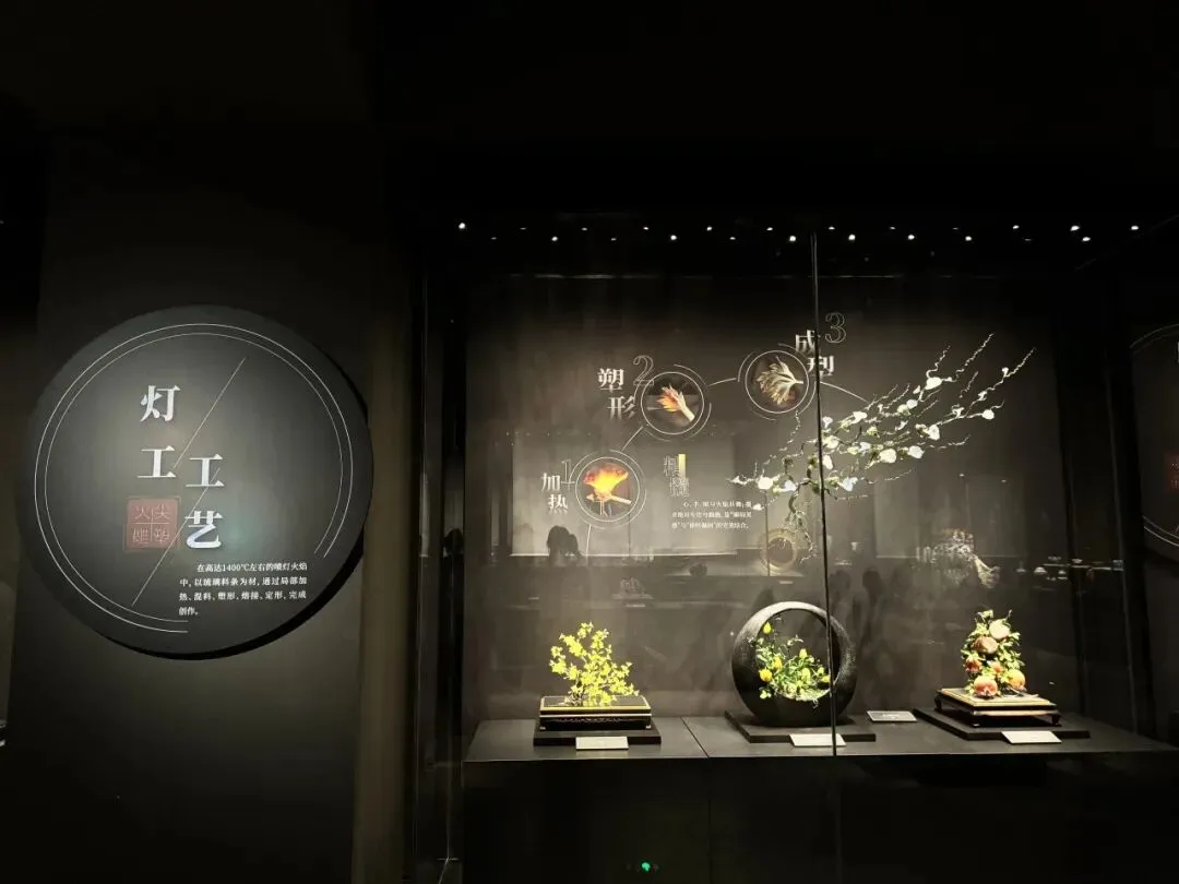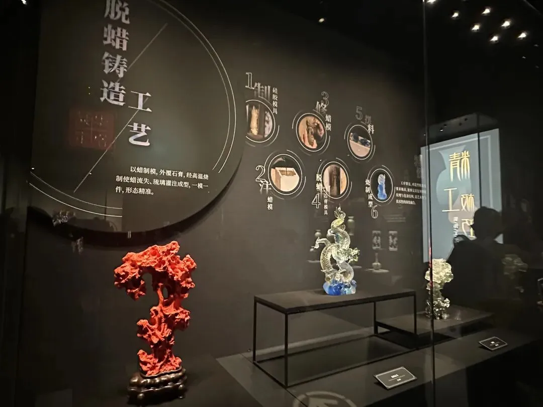琉璃者,光之诗也。灯光冷暖,毫厘之间影响万千。我们反复调校,终让满厅流光。又专程赴琉璃工厂,将吹制、灯工、内画、套料雕刻、花球、铺丝、擀珠等每道工序、每个环节,悉数拍摄成片,置于展板。观者驻足影像前,可见火中取料的惊险、指尖塑形的从容,更可见千年技艺如何在当代工匠手中生生不息。
