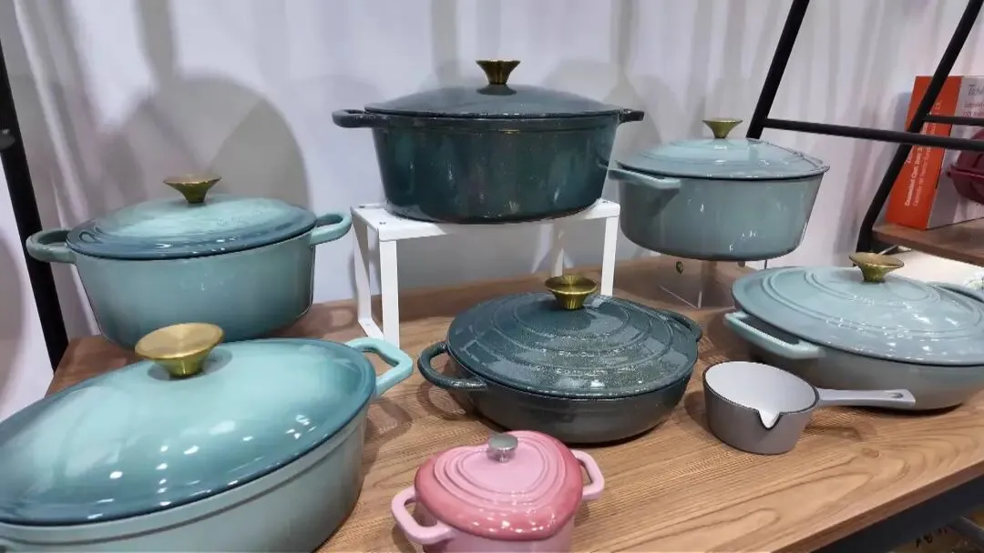 依托成熟的铸铁搪瓷生产工艺,肇庆市意高威厨具科技有限公司携多款铸铁搪瓷煎锅、炖锅等产品在此次广交会亮相,产品采用食品级铸铁基材与高品质搪瓷涂层,经过高温搪烧工艺精制而成,具备均匀导热、锁温性强、易于清洁等特点,适配欧美、东南亚等不同地区的烹饪习惯,公司不断优化制作工艺、提升产品附加值,凭借高性价比的铸铁搪瓷产品,持续赢得了海外市场的认可。