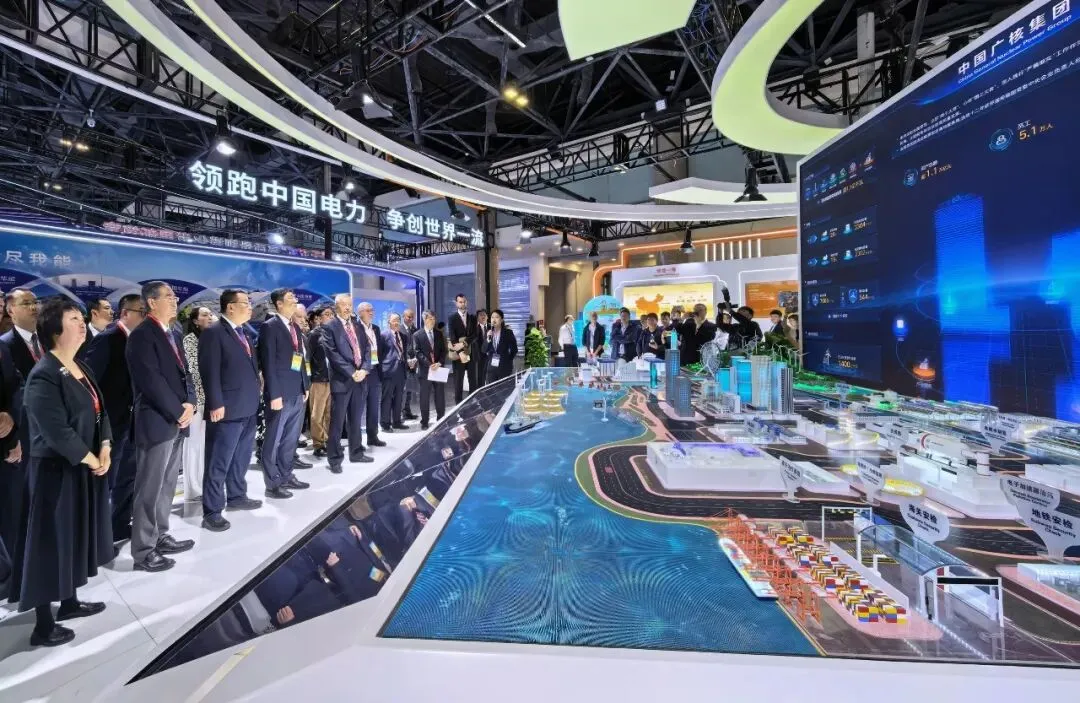 中广核“清洁能源一体化解决方案”电子沙盘成为展区内核心亮点。沙盘以橙、绿、蓝三大应用场景为载体,直观呈现中广核多元产业布局:依托核电、风电、太阳能等清洁能源,夯实绿色发展根基;凭借质子治疗、医用同位素等前沿医疗技术,守护国民生命健康;通过先进安检装备与辐射监测体系,筑牢公共安全防线,以核科技力量为绿色低碳发展与社会稳定赋能。