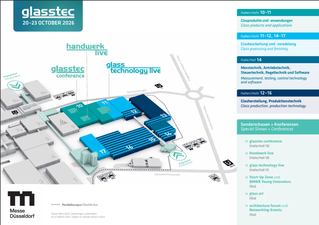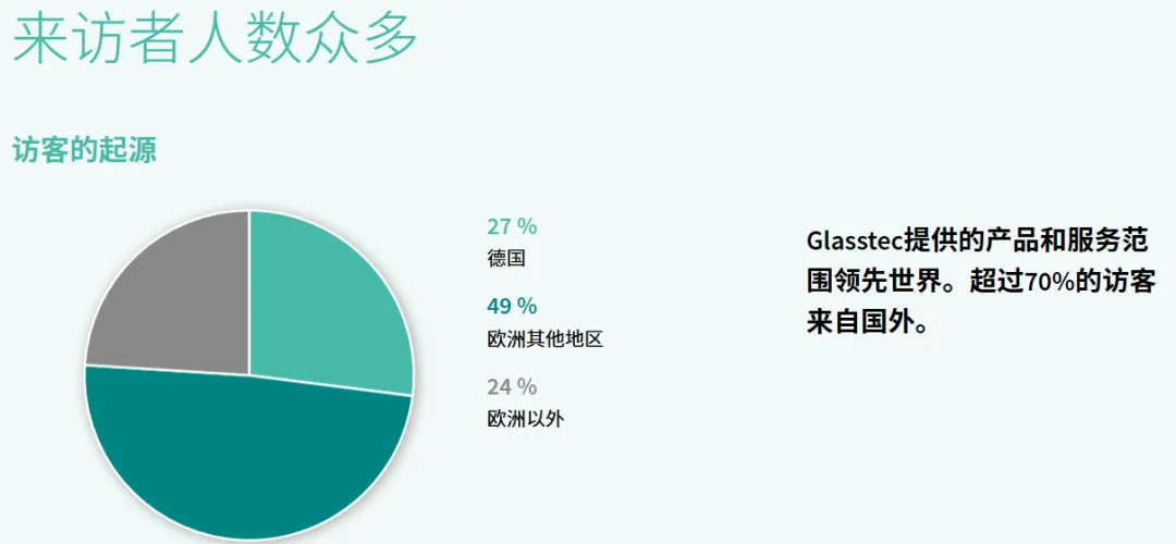 德国杜塞尔多夫玻璃工业展览会(Glasstec)首次举办于1970年,是世界上规模最大的国际性玻璃展览会。参展范围之广、品种之全、数量之多,在国际玻璃展上首屈一指。其不仅预示了未来四五年内玻璃技术的发展趋势,而且为玻璃界企业提供了一个理想的商贸洽谈平台。
