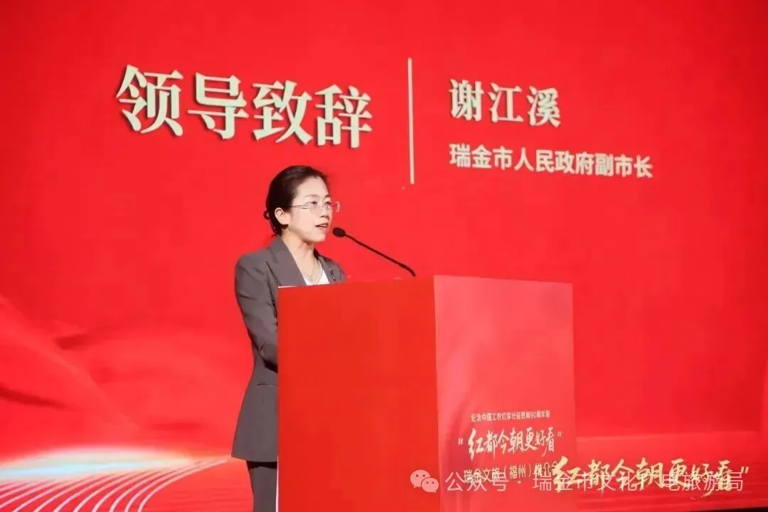 瑞金市人民政府副市长谢江溪出席推介会并致辞;福建省文化和旅游厅二级巡视员王祥银,福州市文化和旅游局副局长、三级调研员叶苏莅临本次推介会。瑞金市文旅推介官随后向两地嘉宾全面推介了瑞金文旅、红培研学资源及“引客入瑞”奖励政策。福州市旅游企业、红培研学机构、主流媒体及商会代表等共同参加了本次活动。