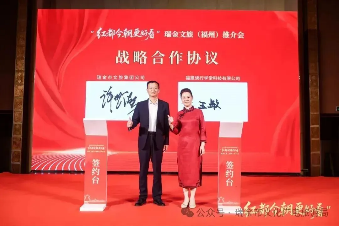本次推介会还促成了文旅合作签约,旨在推动两地在旅游引客、红培研学等方面深度联动,为瑞金红色文旅产业增添新活力。随后,“闽赣同心游红都专列发车仪式”也隆重举行,宣告两地文旅协同发展开启新篇章。