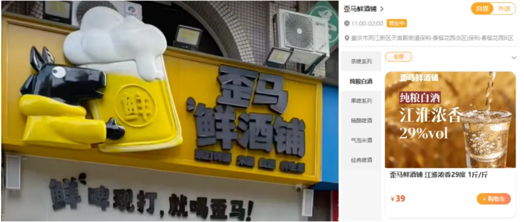 4月17日,美团旗下歪马送酒第一家鲜酒铺落地重庆。根据其线上小程序披露,主要提供风味啤酒、米酒、白酒产品,定价极富竞争力。