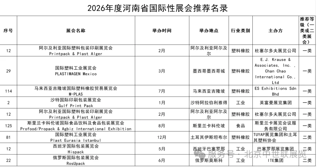 官方依据:《关于公布2026年度河南省国际性展会推荐名录的通知》(发布时间:2026年3月)