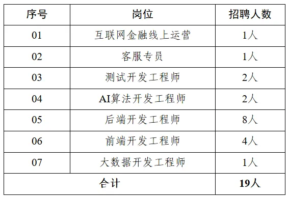 因工作需要,某国有企业招聘互联网行业工作人员19名,用工形式为劳务外包,工作地点为合肥市包河区。有关事项公告如下: