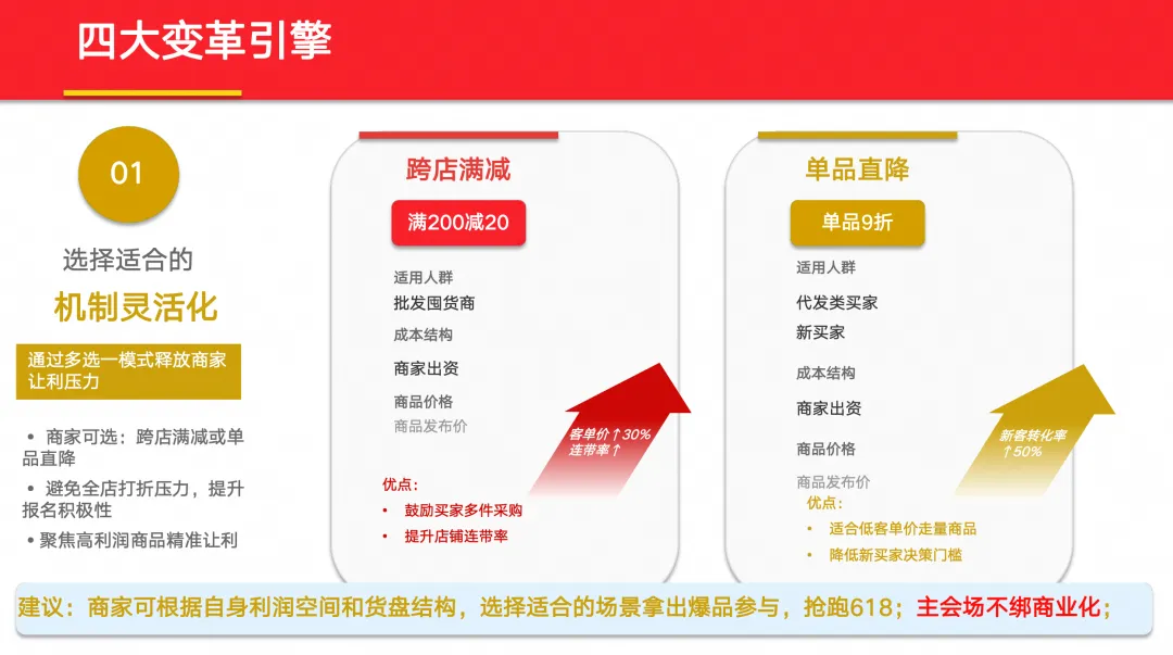 大市场全品类主会场玩法:跨店满减,全店跨店每满200减20,上不封顶/单品直降9折(二选一)。