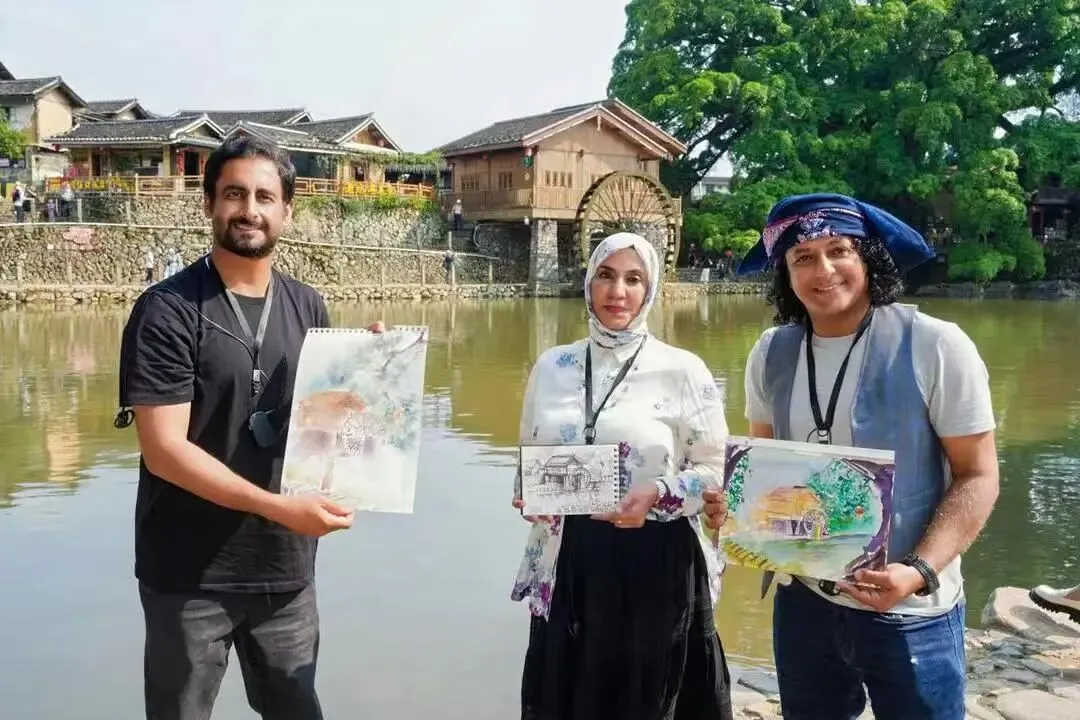 “艺汇丝路——阿拉伯知名艺术家访华采风活动”邀请来自突尼斯、阿曼、阿尔及利亚、约旦、摩洛哥、埃及的9位阿拉伯知名艺术家,与福建艺术家携手走进21世纪海上丝绸之路核心区,穿行于闽地山海之间,沉浸于世界遗产、青绿生态与民俗风情,以多元艺术语言捕捉八闽大地的人文底蕴与时代气象,将异域视角与东方意蕴相融共生。