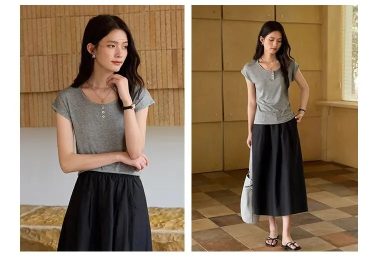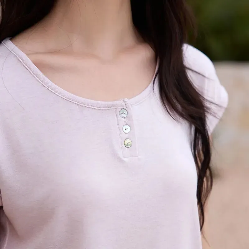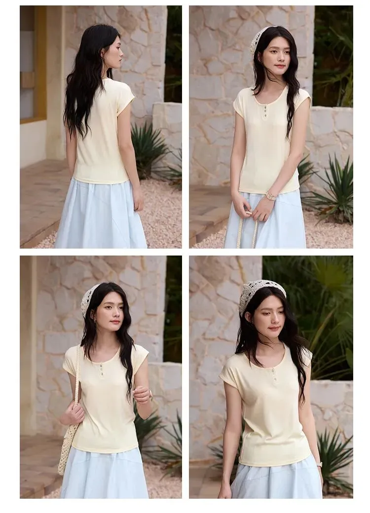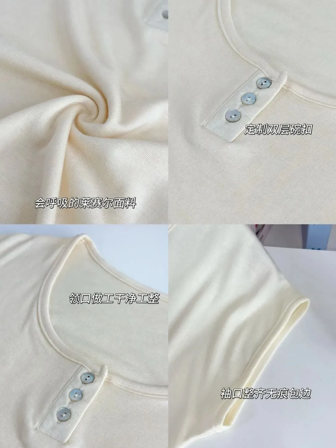 比普通T恤多花3道工序手工钉扣,恰好增添一丝精致感!