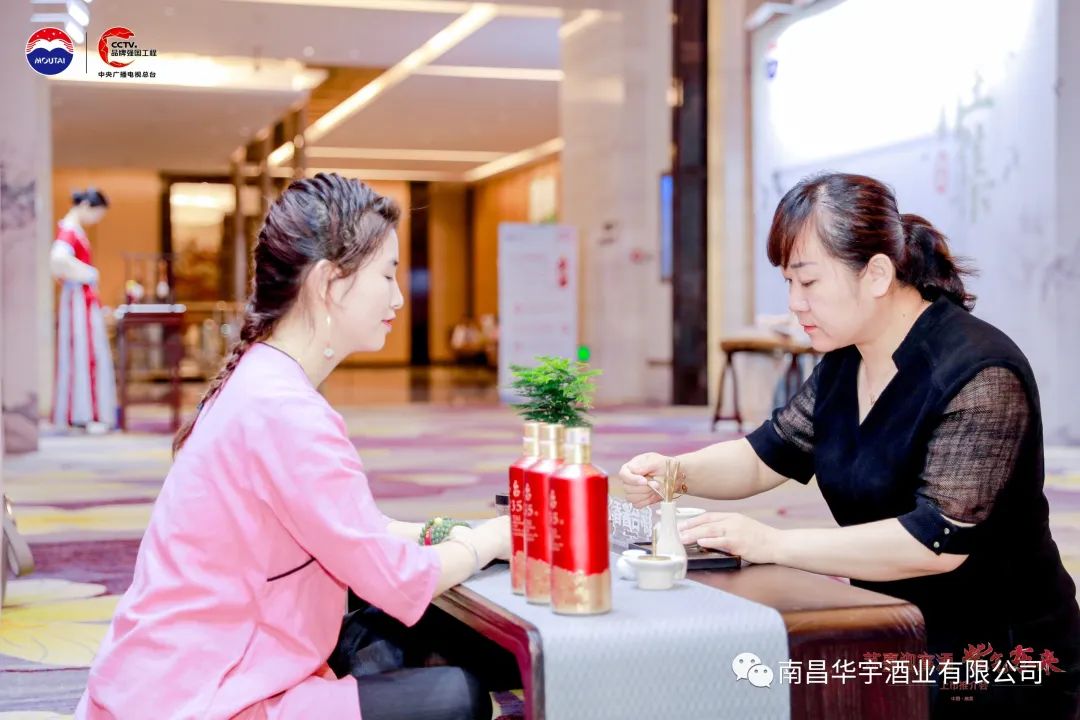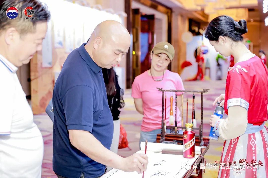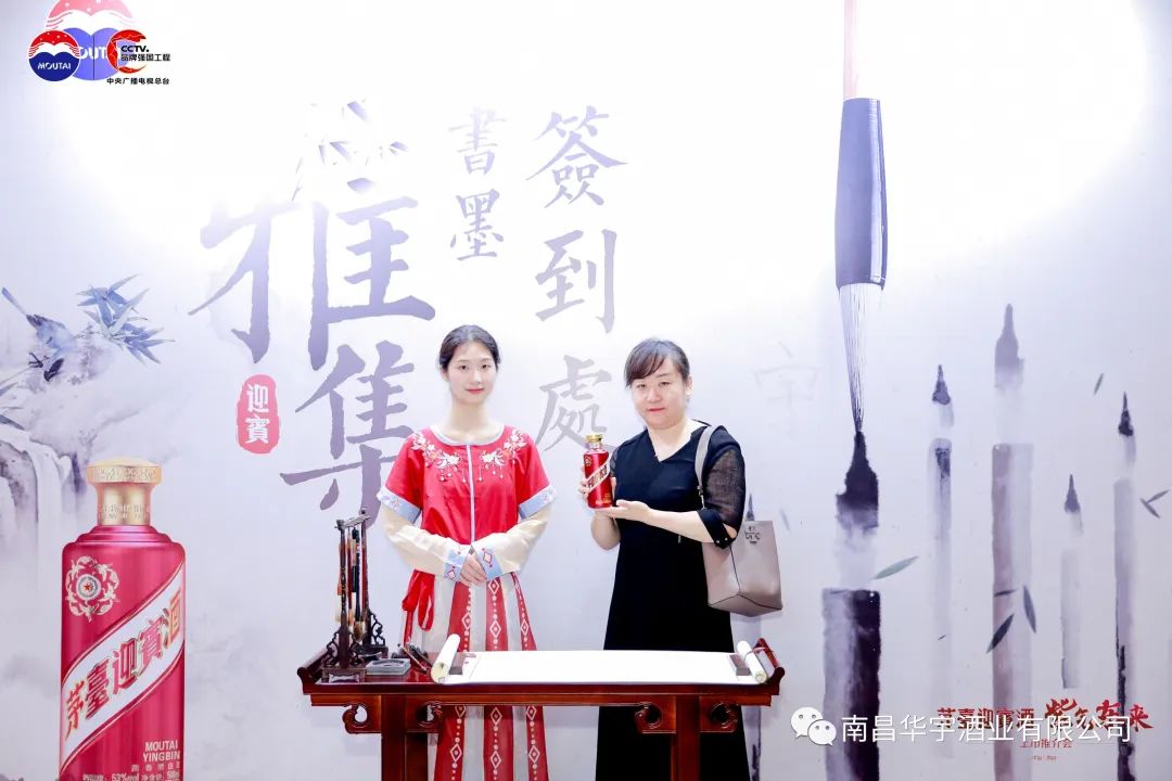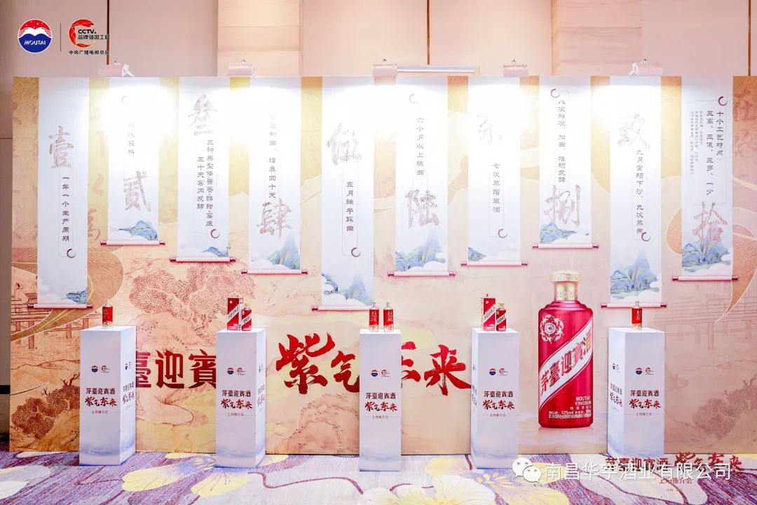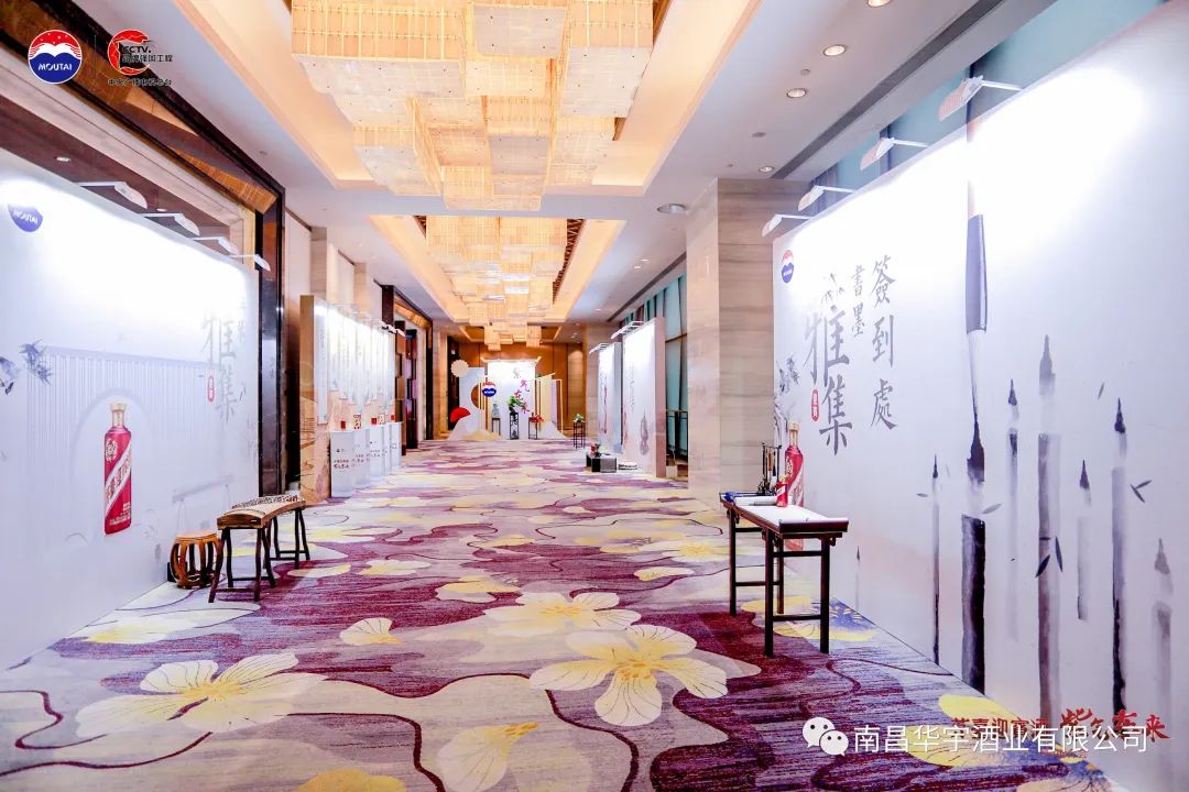 南昌华宇酒业有限公司2023年5月16日在富力万达嘉华大酒店举办了茅台紫迎宾上市推介会,活动前准备了嘉宾入席打卡拍照、工艺长廊浏览、雅集参观。