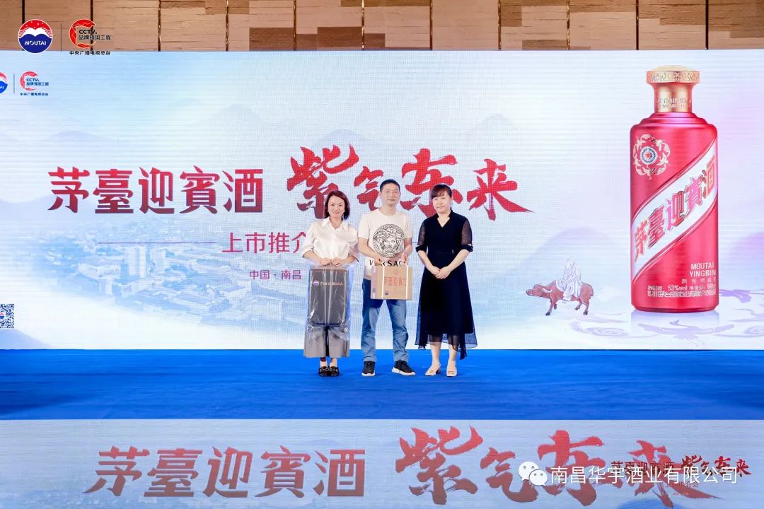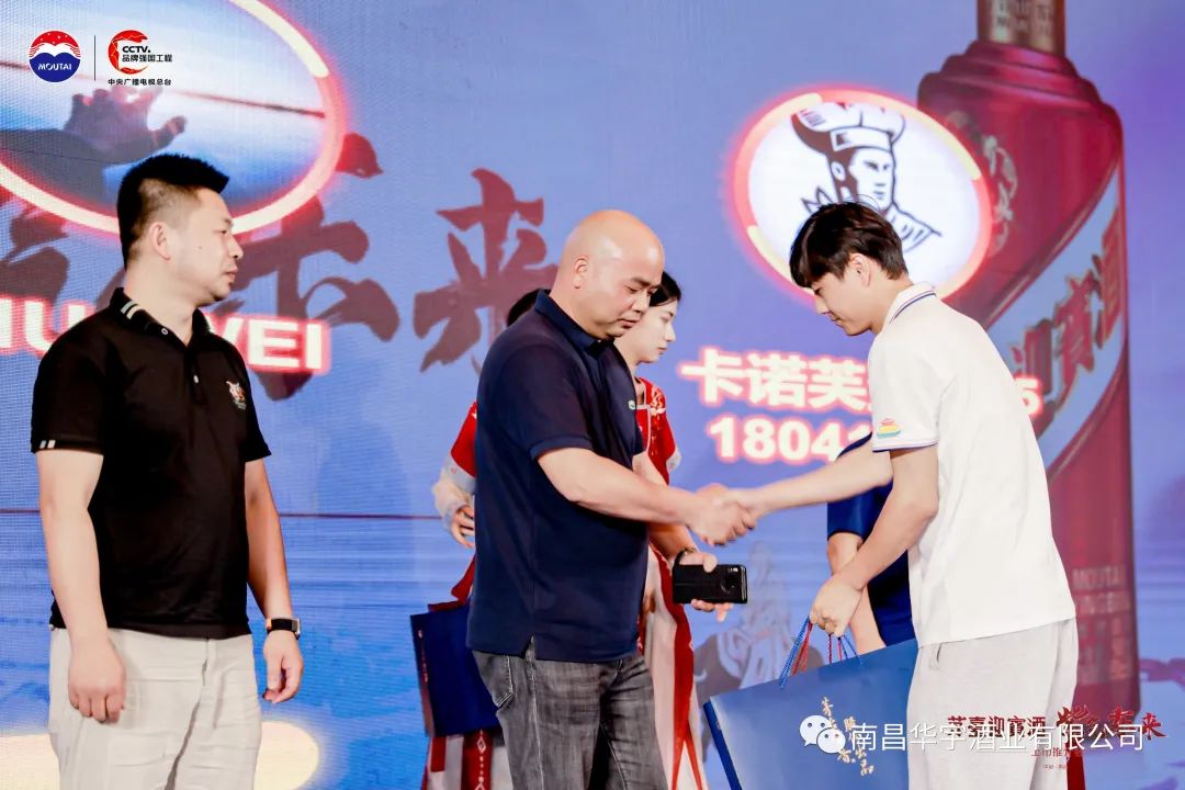 南昌华宇酒业给来宾颁发抽奖礼品