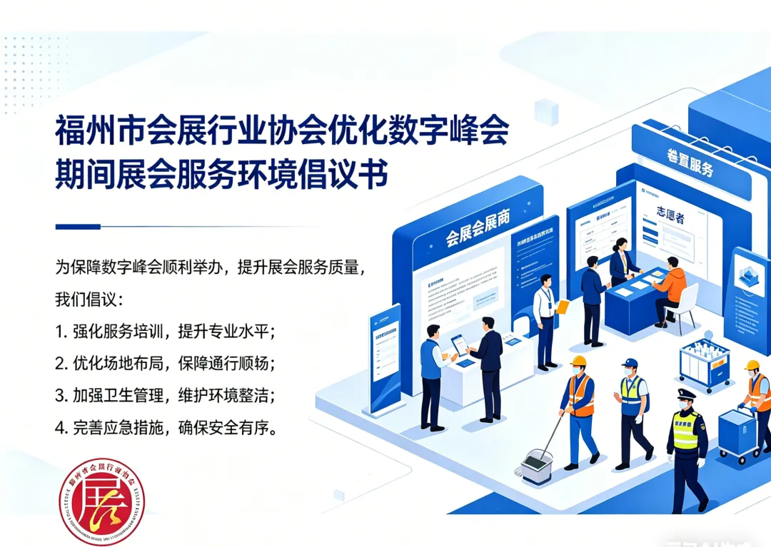 第九届数字中国建设峰会将于2026 年 4 月 29 日至 30 日在福州举办,本次峰会规模大、人流密、关注度高,既是集中展示数字产业成果、赋能行业创新发展的重要盛会,也是全面彰显福州城市形象、擦亮会展行业品牌的关键窗口。为全力保障峰会顺利举办,营造规范有序、优质高效、文明专业、诚信和谐的会展环境,福州市会展行业协会特向全体会展会员单位发出如下倡议: