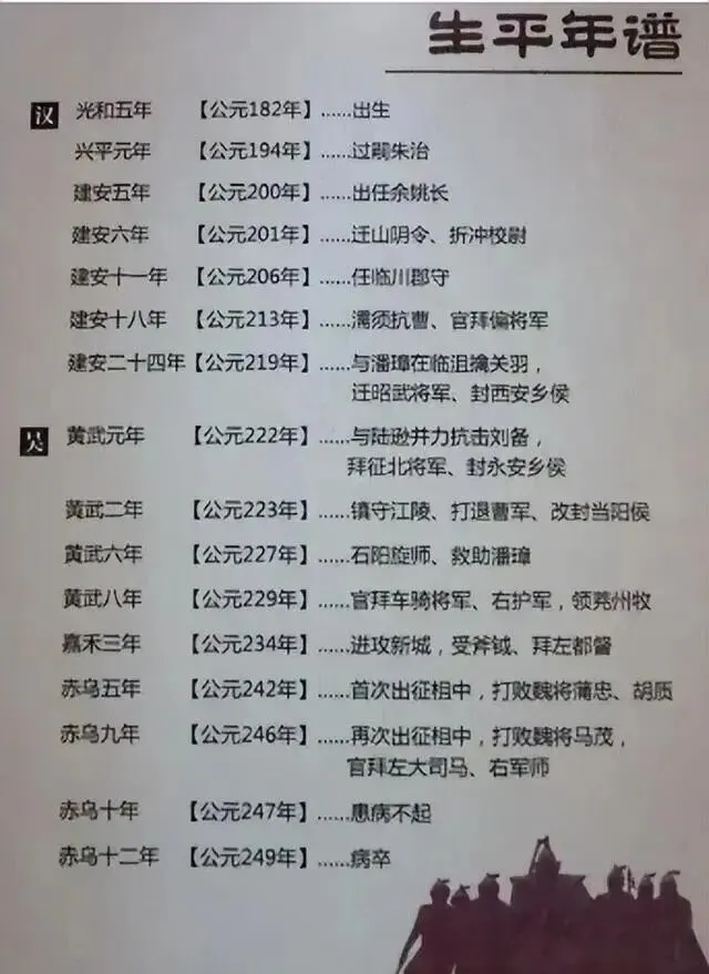 孙权掌权后,任命19岁的朱然为余姚长,后调任山阴令,加折冲校尉,督领五县。孙权见其才能出众,特设临川郡,以朱然为太守,授兵两千,平定山贼,一月内肃清乱局。建安二十四年(219年),随吕蒙白衣渡江袭荆州,与潘璋在临沮截击,生擒关羽、关平、赵累,因功迁昭武将军,封西安乡侯。吕蒙病重时,孙权问继任人选,吕蒙称:“朱然胆略、守业有余,可任。”吕蒙死后,朱然奉命镇守江陵,成为西线最高军事统帅。黄武元年(222年),刘备伐吴,朱然率五千兵与陆逊合力抗敌,攻破刘备前锋,截断其退路,助吴军大胜,拜征北将军,封永安侯。黄武二年(223年),魏国曹真、夏侯尚、张郃等率大军围攻江陵达六个月。城中疫病流行,守军仅余五千,朱然临危不惧,激励士卒,趁敌懈击破其营垒,并处决内应姚泰,终使魏军无功而退,“名震敌国”,改封当阳侯。此后屡次出征,牵制曹休,助陆逊大破魏军;官至左大司马、右军师,位极人臣。赤乌十二年(249年)病逝,孙权为之素服举哀。