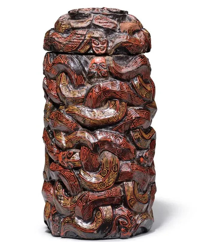 战国(楚) 彩绘木雕蟠蛇漆卮