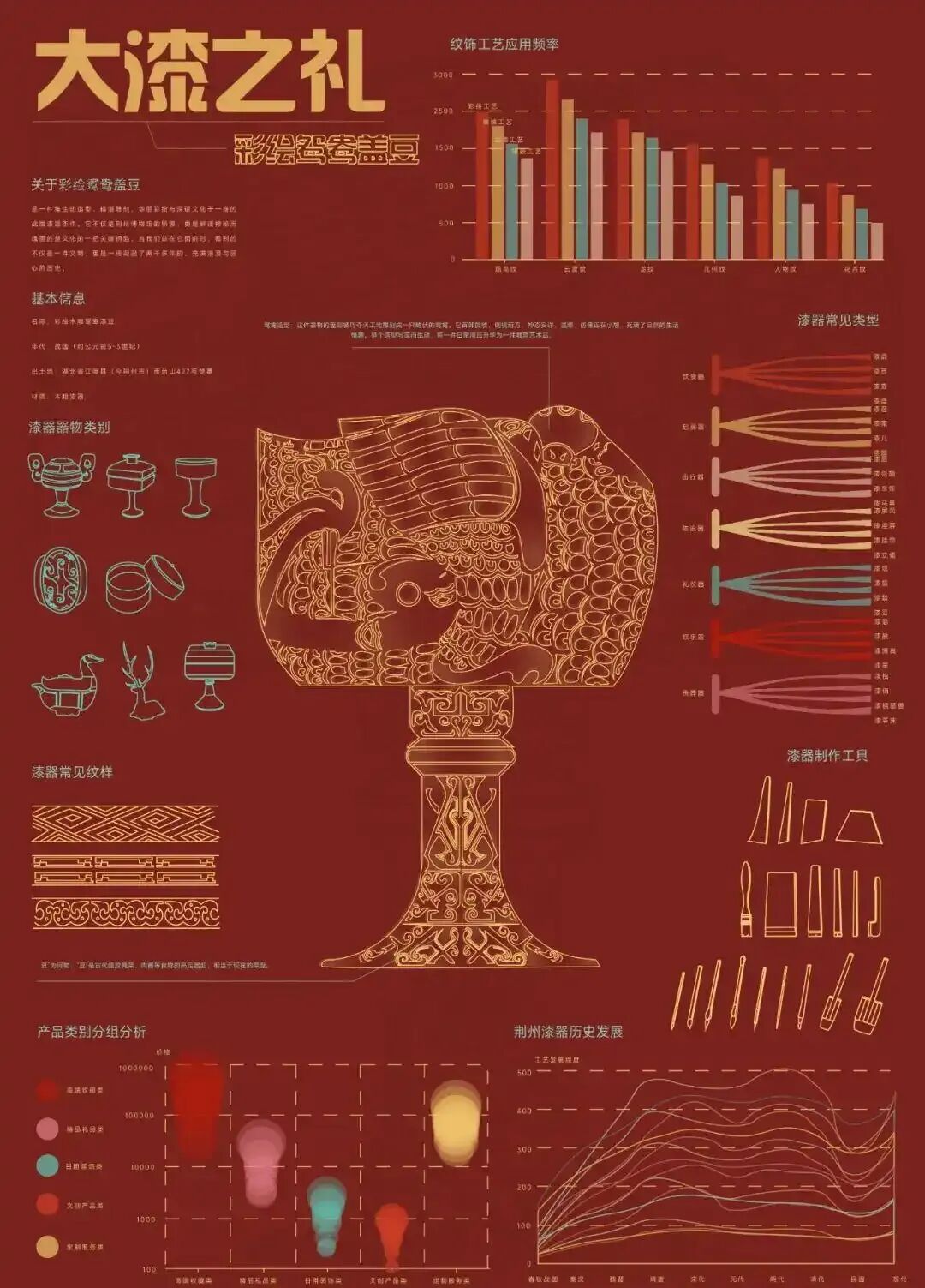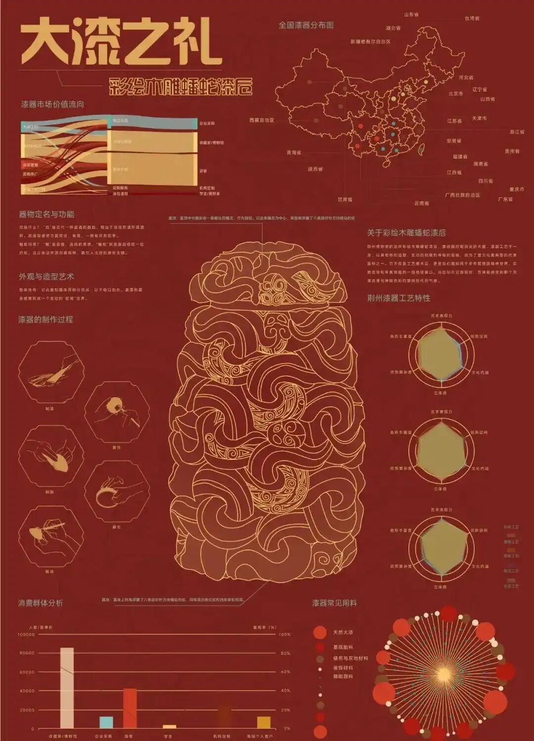 漆器是用时间熬出来的艺术。以天然大漆为魂,胎骨为体,经裱布、刮灰、数十层髹漆、精雕细琢与反复推光,最终成就坚、润、雅、千年不朽的东方瑰宝。