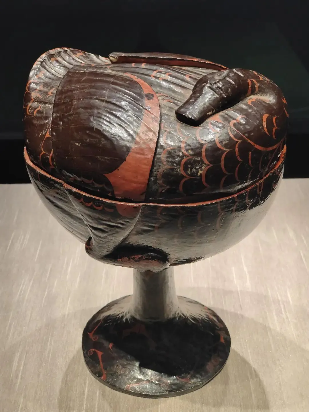 战国彩绘鸳鸯盖豆