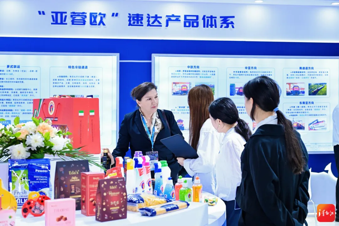 此次参展,成都港投公司联合下属班列公司、陆港公司、自贸通公司共同参与。展位上,不仅系统呈现了“亚蓉欧”大通道的立体网络布局、精品线路产品及全流程运营服务体系,还展示了通过成都国际班列运输的各类特色商品,直观呈现了国际班列在跨境物流、贸易促进中的核心作用。