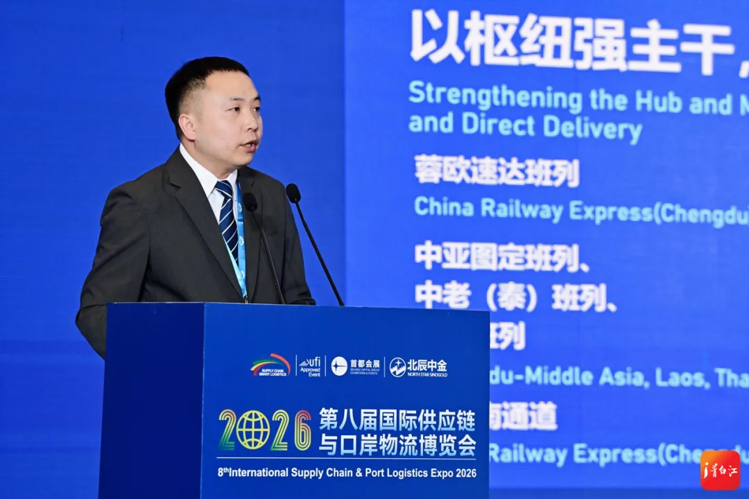 “第十届亚欧多式联运发展大会”同期举办。成都港投公司相关负责人出席大会并发表主题演讲,以“共建共享 共筑亚蓉欧大通道”为核心,重点推介成都国际班列亚蓉欧速达产品体系,全面展示成都青白江作为世界级陆港枢纽的通道优势、营商环境与合作机遇,进一步扩大成都中欧班列全球合作伙伴“朋友圈”,助力构建开放共赢的国际物流生态。