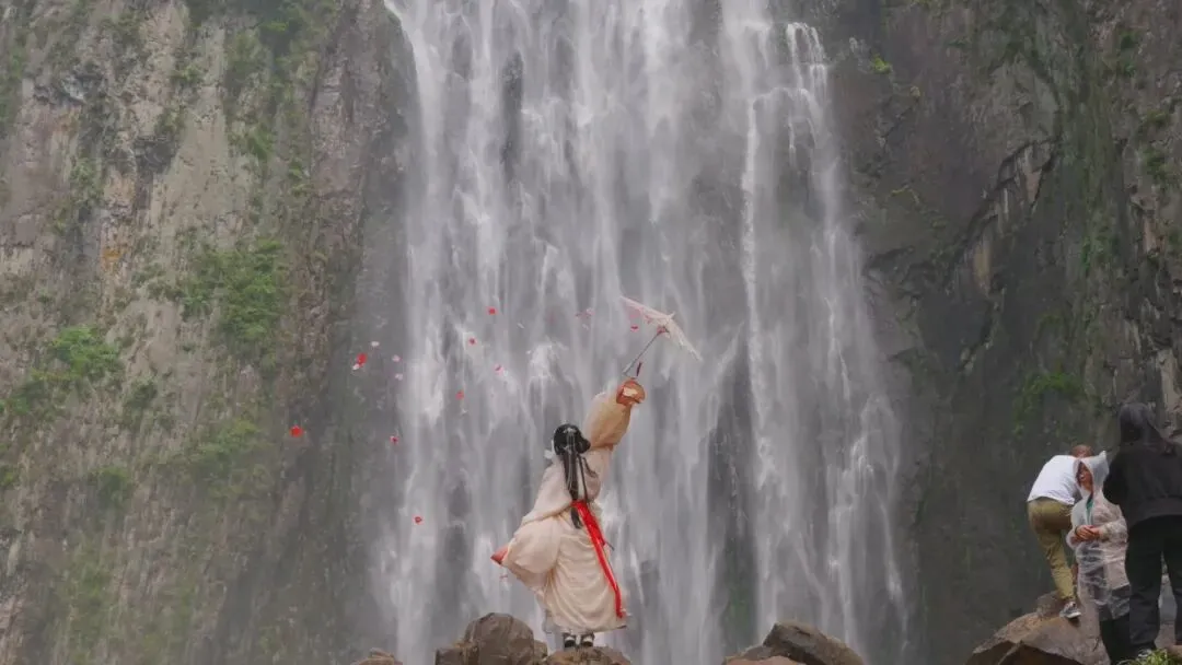 踏入景区,“中华第一高瀑”百丈漈的雄伟景观,引得游客纷纷驻足。现场,身着汉服的年轻人衣袂飘飘,成为景区一道道靓丽的风景线。作为文旅融合(文成)分会场的核心地标,游客们领略自然风光的同时,解锁武侠与山水交融的新奇体验。来自安徽淮北的游客王可感叹道:“这里的瀑布很美,景色很好,让人感觉很放松。”另一位游客陈含冰则说:“我觉得穿汉服逛山水很契合,这样更有意境,尤其是与瀑布等景色融合在一起。”