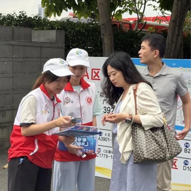 青协志愿者身穿志愿者马甲,以志愿服务驿站为主要服务阵地,辐射各个展馆外围、出入口、安检口等重点区域和停车场、地铁站等交通站点,为国内外客商提供营商宣传、场馆指引、办证咨询、语言翻译等一系列服务。他们用专业而热情的服务向来自世界各地的客商展现夺目的中大风采、传递暖心的广东温度。