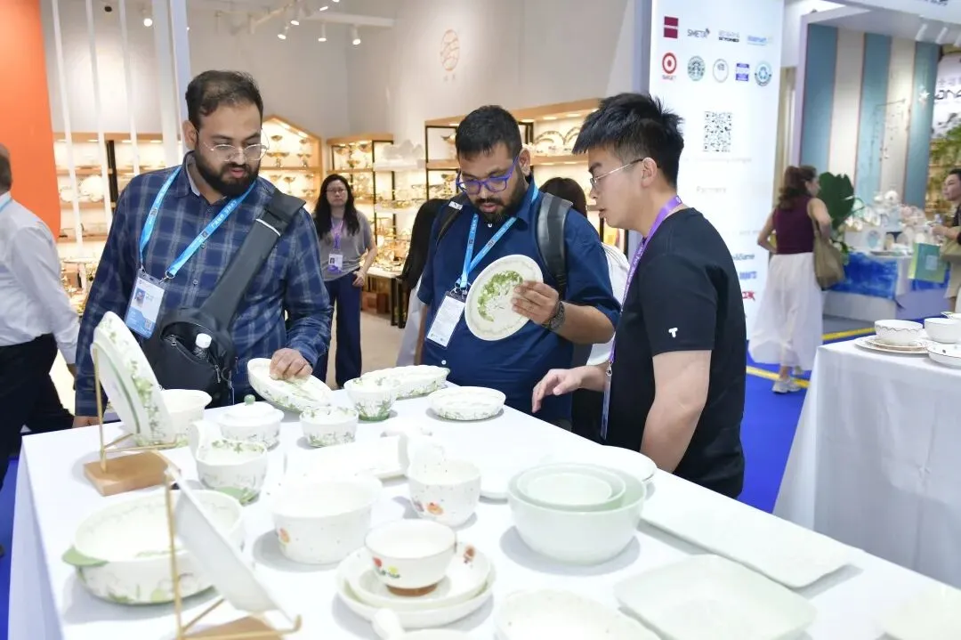 在浩信贰捌国际贸易(广州)有限公司的展位,一套套设计新颖、质感细腻的中高端陶瓷餐具错落有致,在灯光下散发着温润的光泽。作为专注于日用陶瓷领域的外贸企业,这家广州企业的产品不仅畅销欧美市场,更在中东、东南亚收获了良好口碑。