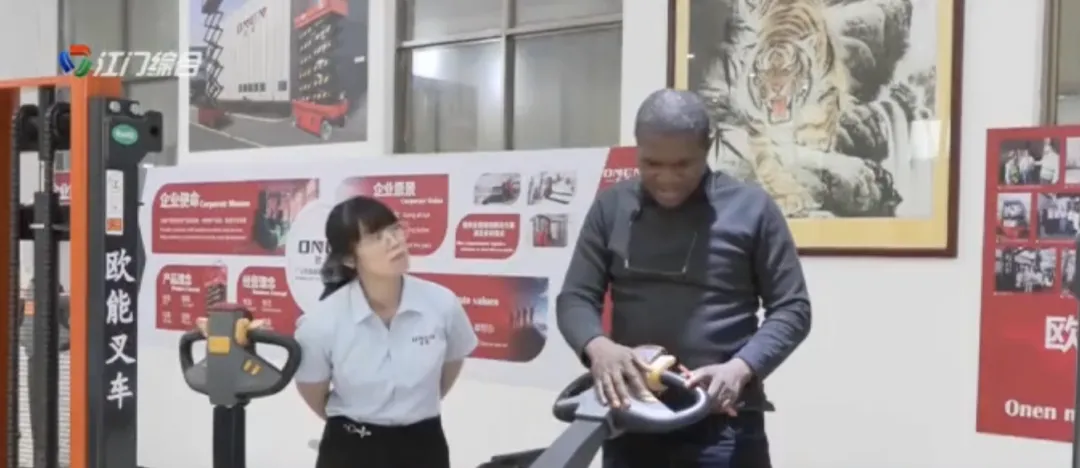 位于台山的广东欧能新能源设备有限公司迎来了来自非洲尼日利亚与津巴布韦的两批客商。采购团来到企业的生产基地,实地考察并深入洽谈。企业展示了新研发的7吨级锂电平衡重式叉车,凭借“充电1小时、作业7小时”的高效能耗比,当场打动客商。