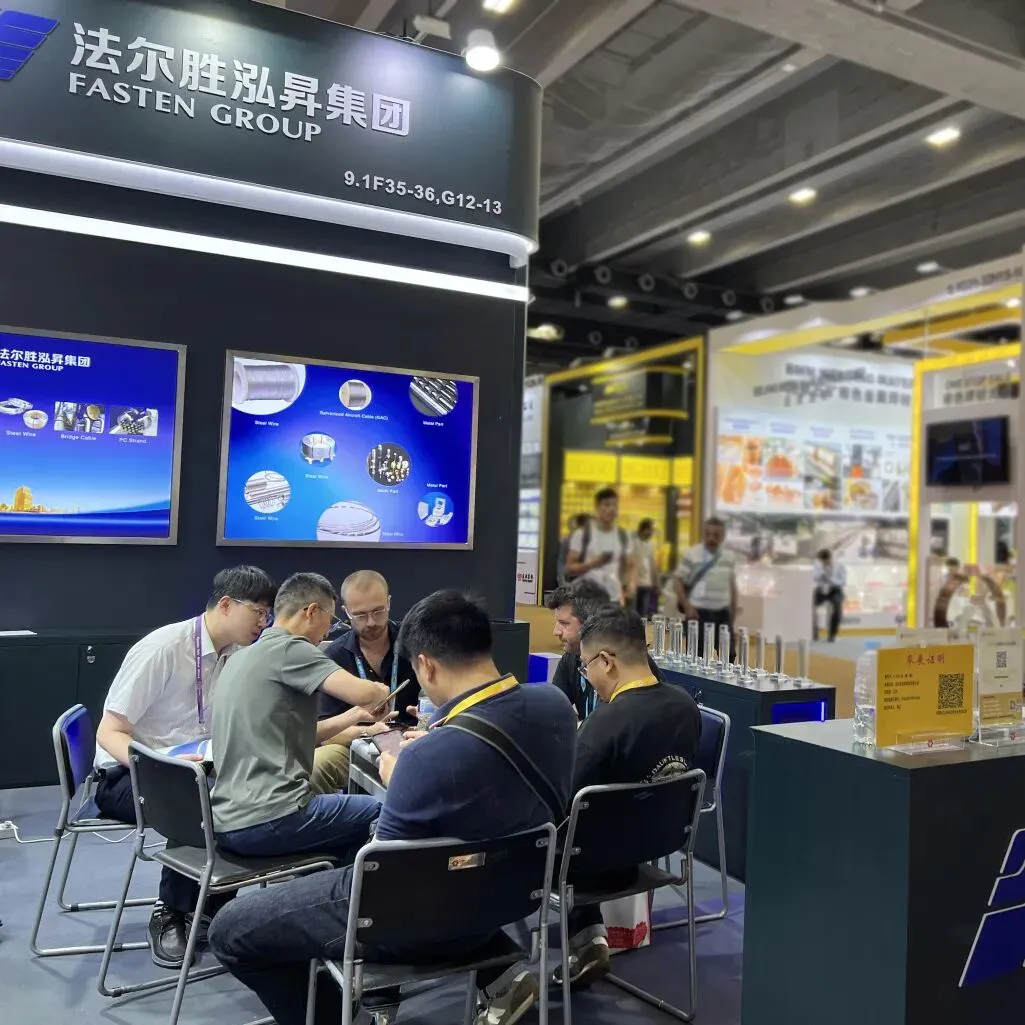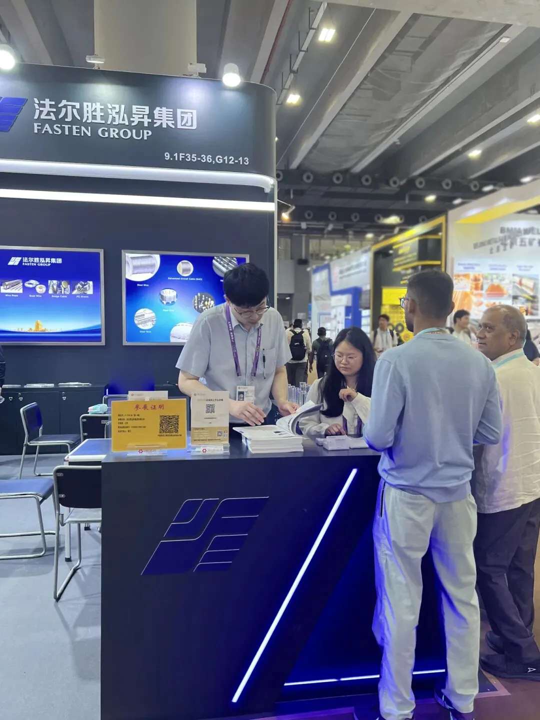 法尔胜携全产业链创新成果隆重登场,展位设计简洁大气,突出“中国智造”与绿色低碳理念。本次重点展示了其在绿色低碳制造与高附加值金属制品领域的智造实力,多款产品在强度、耐久性及环保性能方面均具备显著的技术与性能优势,吸引了大量专业买家驻足交流。