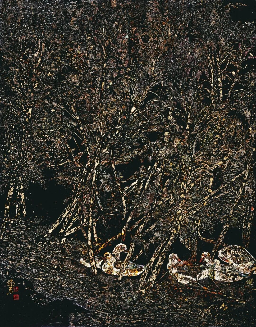 杨勇《洞庭之秋》漆画 80x60cm 湖南