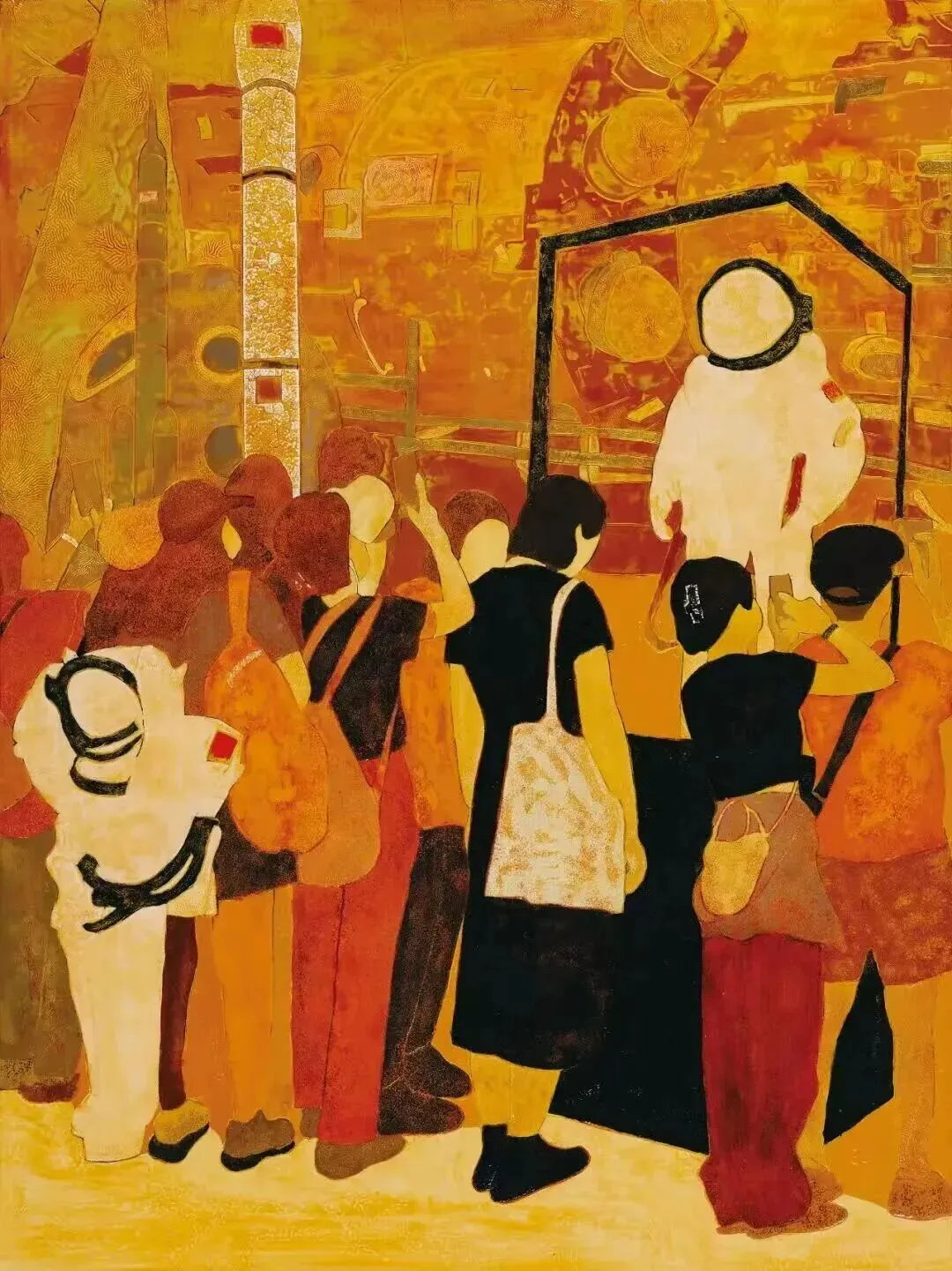 游一 耿琳涵 闵盈《大课堂·大国航天No.05 》漆画 80x60cm 四川