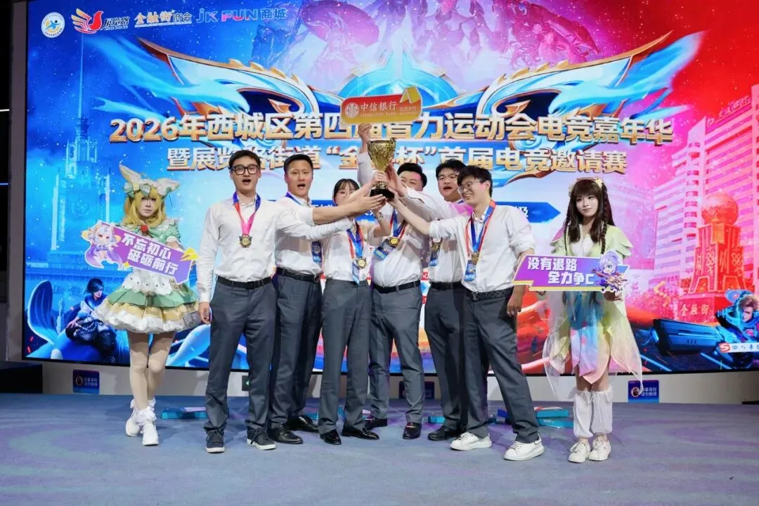 日前,2026年西城区第四届智力运动会电竞嘉年华暨展览路街道“金科杯”电竞邀请赛在JK FUN商城圆满收官。赛事由西城区体育局、展览路街道办事处、金融街商会联合主办,以“智竞西城·数娱赋能·融合发展·消费升级”为主题,为辖区干部职工搭建了切磋交流的平台,更以赛事为纽带撬动商圈人气,让文商旅体展演融合的活力在西外地区全面迸发。