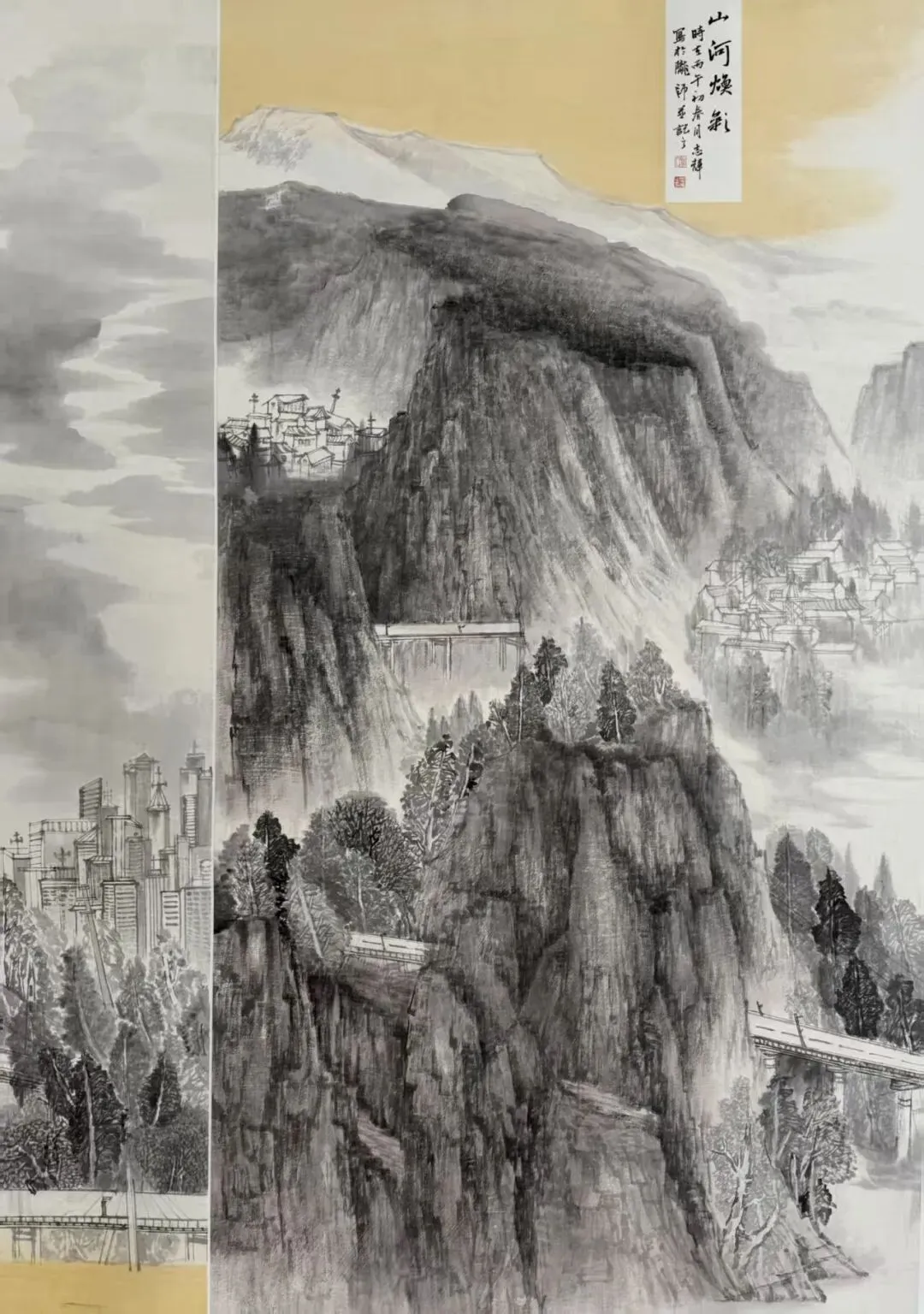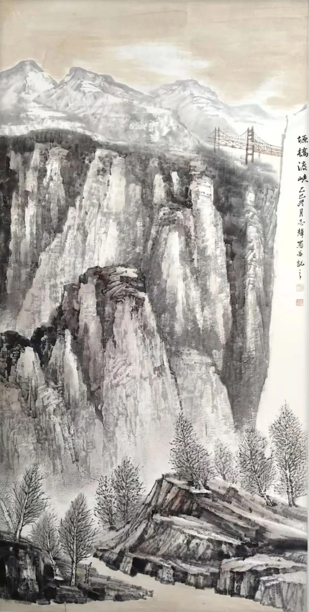 ▲《塬桥渡峡》180×97cm中国画
