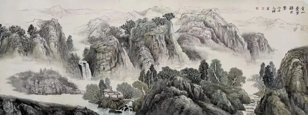 ▲《青山叠翠听泉声》180×70cm中国画