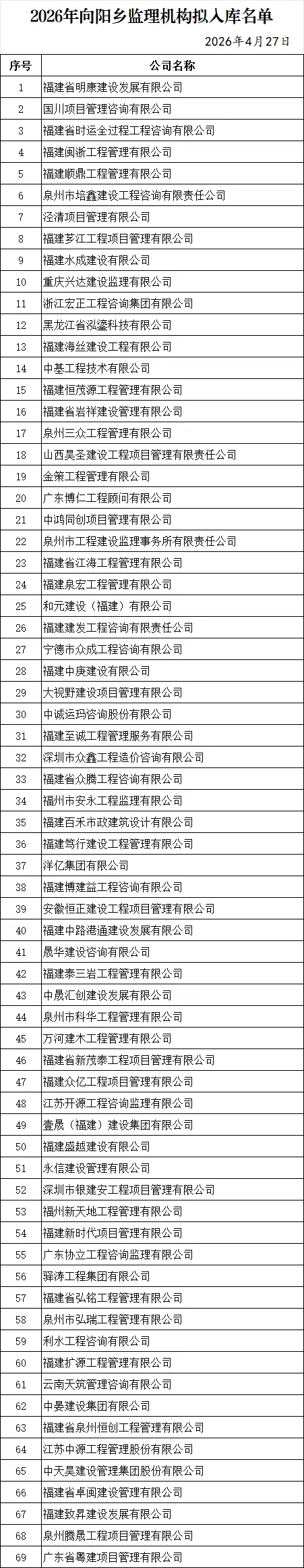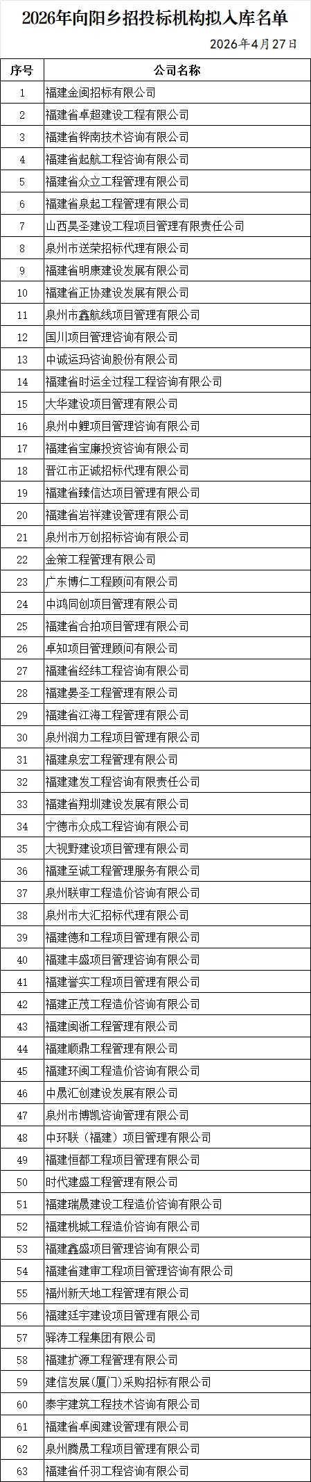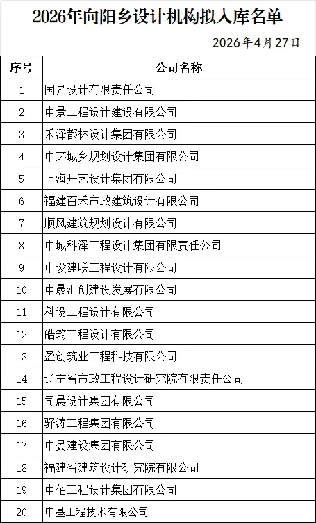 经乡入库评审团进行资格审查,拟纳入向阳乡工程建设服务商库机构有:监理机构69家,设计机构20家,招投标机构63家,经向阳乡党委(扩大)会研究通过,现将拟入库名单公示如下: