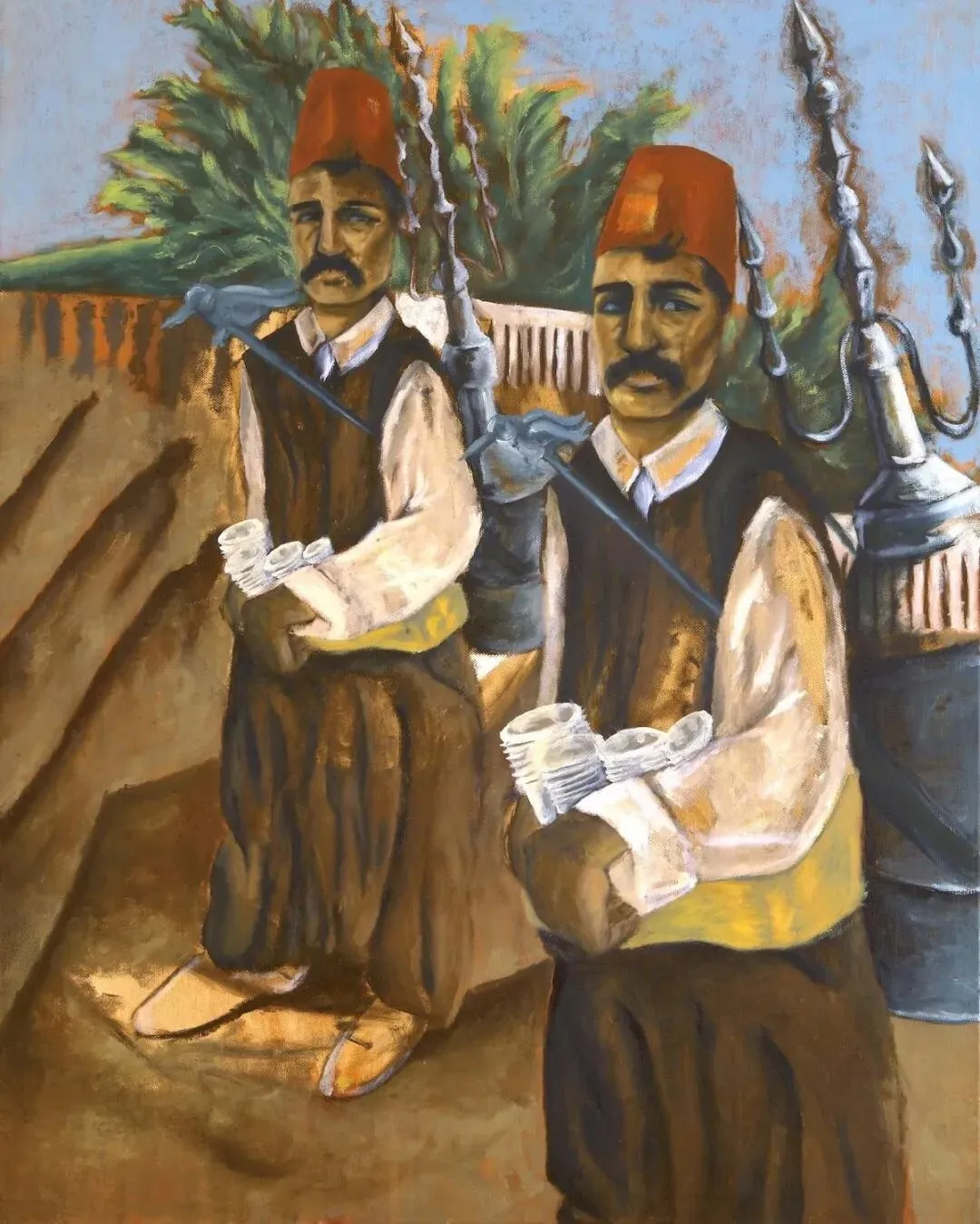 上面这两位端着咖啡杯的叙利亚男人,来自 Muna 的画作(刚才那张)
