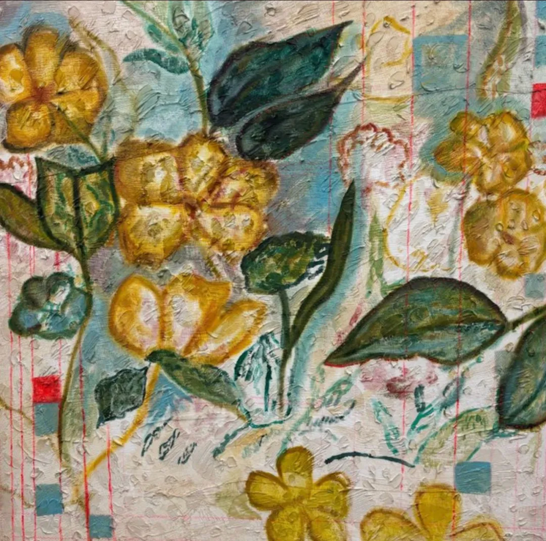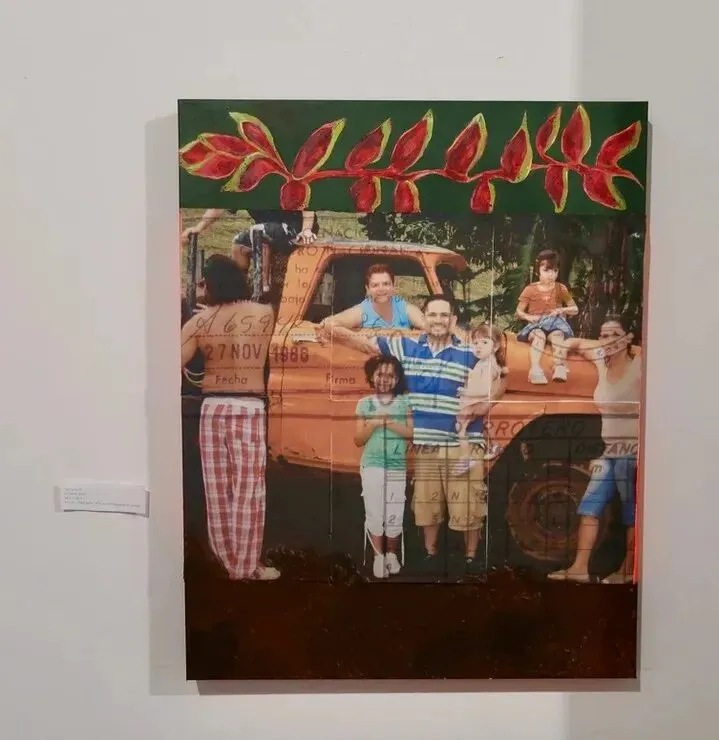 她翻出家里 1986 年从哥斯达黎加搬到美国时的老照片,用丝线、颜料、老布料,一层一层把它们重新织起来。