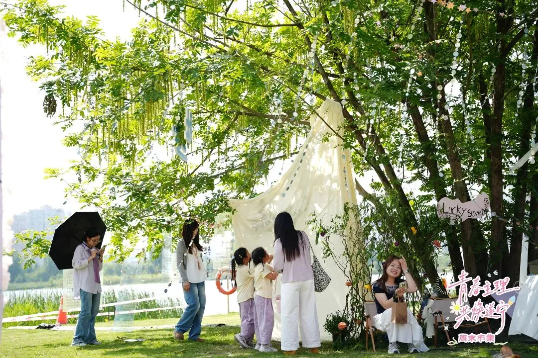 除了特色摊位,城市青年摄影影像展、遂宁青年工作纪实、创意互动展陈一一呈现,细腻讲述青年与遂宁双向奔赴的温暖故事。扎染体验、风车手作、香囊DIY等趣味互动项目人气爆棚,大人小孩齐聚动手创作,尽情享受手工乐趣。同时,集章打卡、兑换消费券的趣味活动广受好评,市民穿梭市集收集徽章,在沉浸式游玩的同时,也有效带动了现场消费活力。