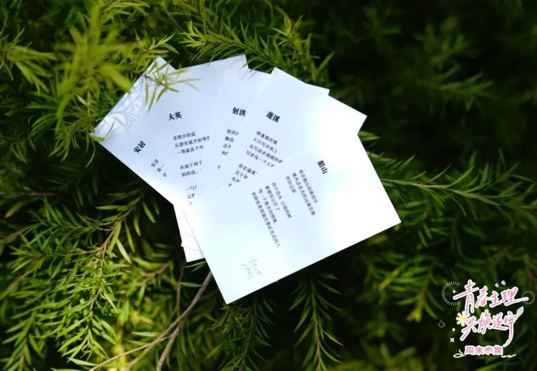 现场打造的“念念青音・道有回声”红线打卡装置成为热门点位,众多青年驻足拍照、互动留言,还能领取专属诗歌小卡。青年创作者钱新受邀为本次活动创作的五首遂宁主题小诗广受好评,“因为我是遂宁人,本身对遂宁这片土地就很有感情,所以我是带着这样的心情去写下这些文字的,也希望能把这份感情带给更多人”。