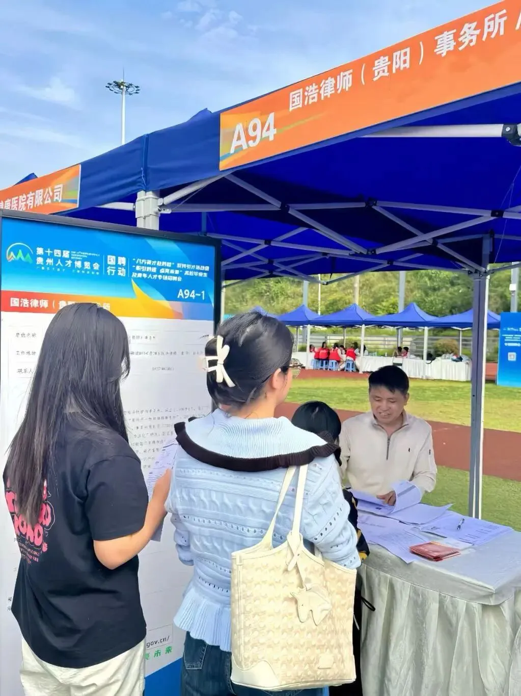 2026年4月25日,2026年贵州省“人才日”活动暨第十四届贵州人才博览会启幕,贵阳贵安组织用人单位参会引才,向四海英才发出诚挚邀约,国浩律师(贵阳)事务所(以下简称“国浩贵阳”)积极响应参会,开展人才引进工作。当日,作为人博会的首场活动,“八方英才赴黔程”系列引才活动暨“职引黔程•点亮未来”高校毕业生及青年人才专场招聘会在贵州财经大学花溪校区举行,全省600余家用人单位齐聚引才。
