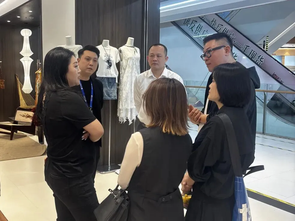 大融汇管理团队热情迎接,并亲自带领交流团逐层走访。从潮流女装到精品配饰,从品牌展厅到快反档口,每一层都是一次新的发现。考察途中,十三行商户不时停下脚步,与档口主理人交换微信、探讨产品细节。大融汇的精细化运营、商户的创新活力,给交流团留下了深刻印象。
