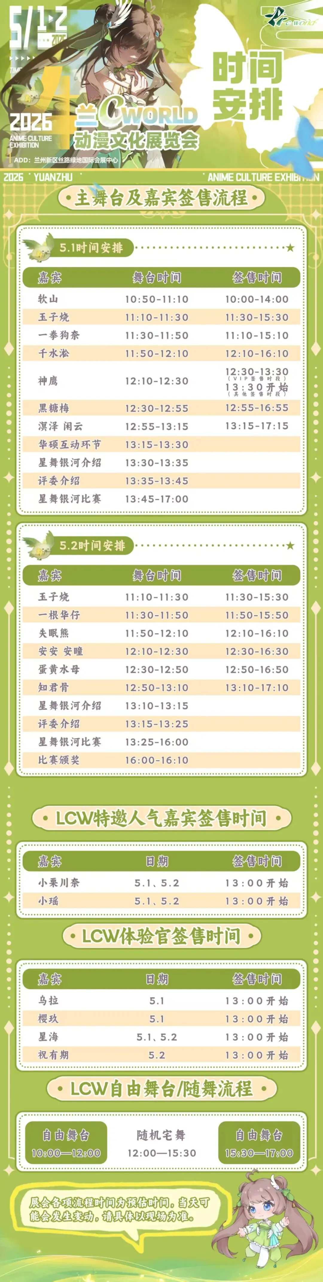 本公示时间均为预估时段,后续可能适时调整,最终以现场实际安排为准。